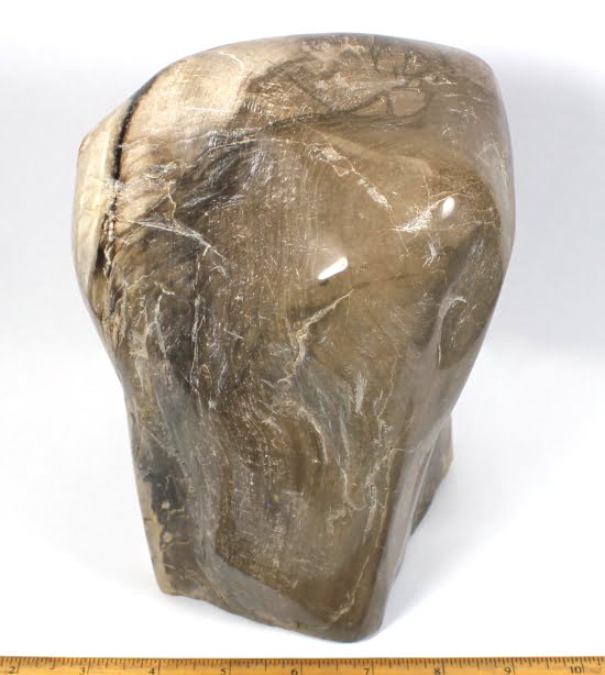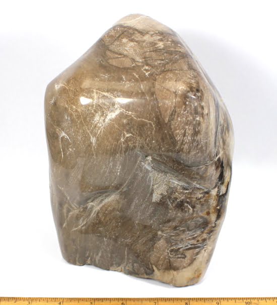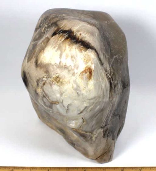 PW201  Here is a nice specimen of petrified wood from Indonesia. This piece has various gorgeous Grey, Tan and Brown colors mixed in all around with very nice wood design.  The colorful piece has a smoothed and polished surface with a couple small natural cavities bringing out the unique character of this specimen.  The petrified wood measures approximately 5 1/2″ wide x 5 1/8″ x nearly 7 7/8″ tall and weighs over 12 1/4 lbs.