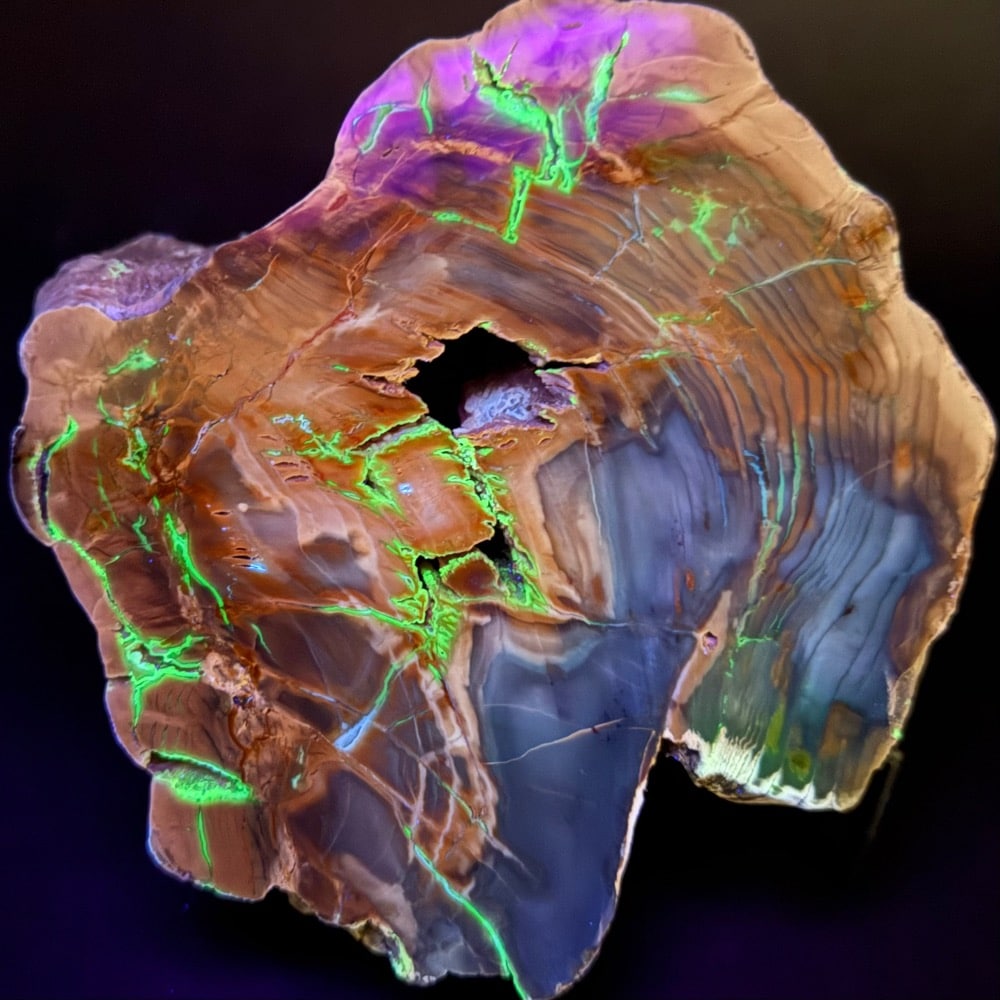 Appearance: It has a good polish on the front side bringing out the internal character while leaving the remaining in its natural state. UV fluorescent.