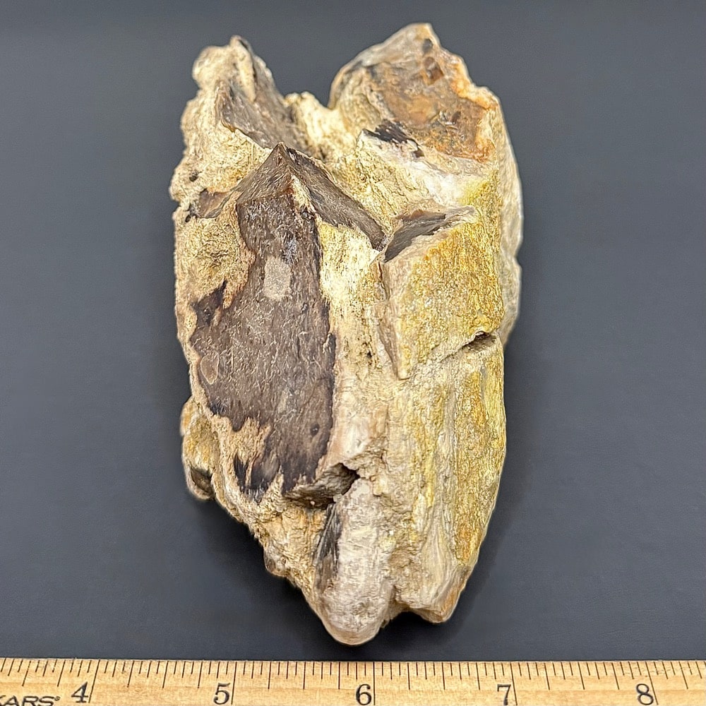 Petrified Wood is a type of a fossil as it consists of fossil wood where all the organic materials have been replaced with minerals while retaining the original structure of the wood.  These minerals are most often Silicates such as Quartz.  Other minerals, Manganese, Iron and Copper, in the water or mud during the petrification process give Petrified Wood a variety of color ranges: black – Carbon; green/blue – Copper; red/brown/yellow – Iron.  Petrified Wood can preserve the original structure of the wood in all its detail all the way down to the microscopic level.  Structures such as tree rings and the various tissues are often observed features.  Although Petrified Wood can be found worldwide, it is rather rare in larger quantities and at times can be difficult to obtain by the average collector.
