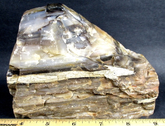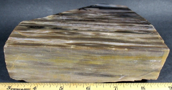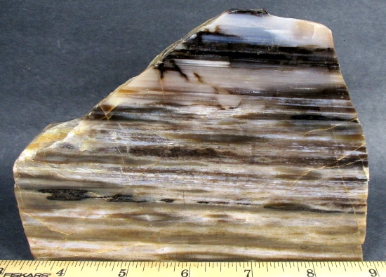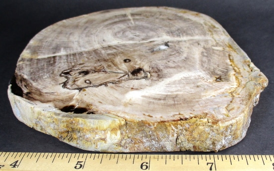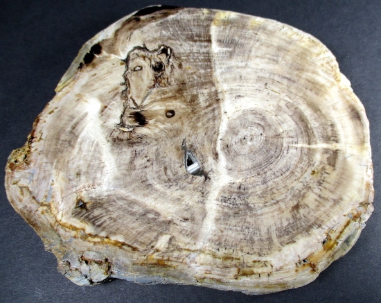 Petrified Wood is a type of a fossil as it consists of fossil wood where all the organic materials have been replaced with minerals while retaining the original structure of the wood.  These minerals are most often Silicates such as Quartz.  Other minerals, Manganese, Iron and Copper, in the water or mud during the petrification process give Petrified Wood a variety of color ranges: black – Carbon; green/blue – Copper; red/brown/yellow – Iron.  Petrified Wood can preserve the original structure of the wood in all its detail all the way down to the microscopic level.  Structures such as tree rings and the various tissues are often observed features.  Although Petrified Wood can be found worldwide, it is rather rare in larger quantities and at times can be difficult to obtain by the average collector.