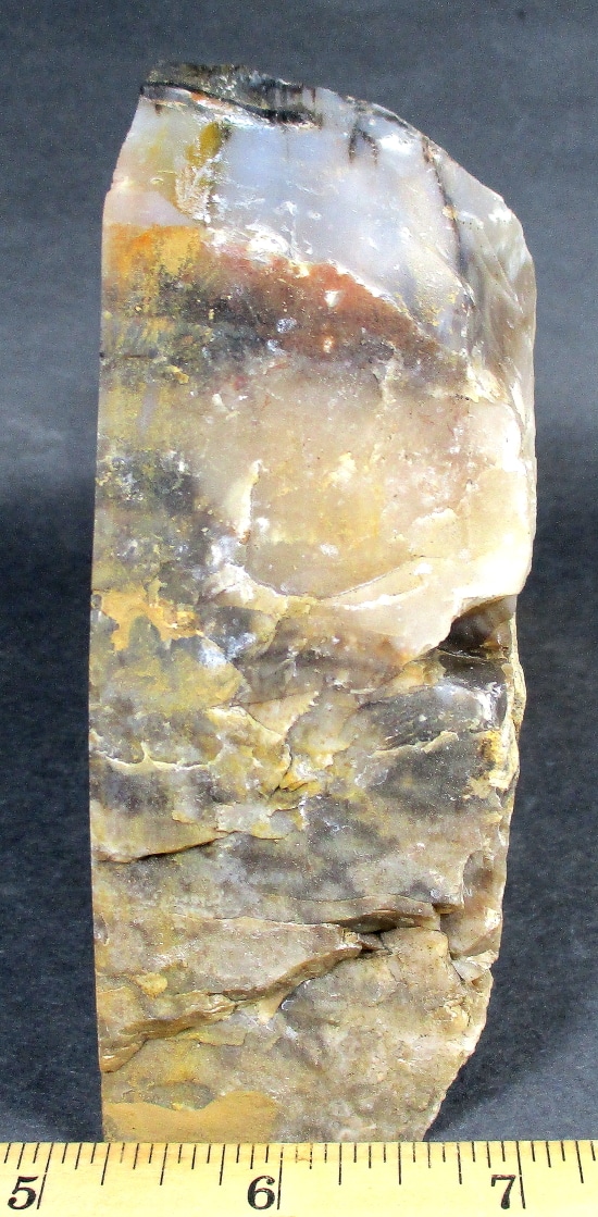 Here is a nice specimen of petrified wood from the Pacific Northwest. This great little wood has great colors in fabulous design. It has a good polish on the top side highlighting the unique aspects of this piece while leaving the outer bark in its natural state. It measures 5 3/4″ x 5″ x just over 1/2″ thick. Very pretty!