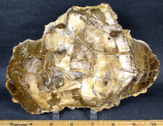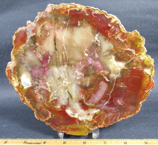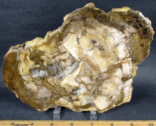 Petrified Wood is a type of a fossil as it consists of fossil wood where all the organic materials have been replaced with minerals while retaining the original structure of the wood.  These minerals are most often Silicates such as Quartz.  Other minerals, Manganese, Iron and Copper, in the water or mud during the petrification process give Petrified Wood a variety of color ranges: black – Carbon; green/blue – Copper; red/brown/yellow – Iron.  Petrified Wood can preserve the original structure of the wood in all its detail all the way down to the microscopic level.  Structures such as tree rings and the various tissues are often observed features.  Although Petrified Wood can be found worldwide, it is rather rare in larger quantities and at times can be difficult to obtain by the average collector.