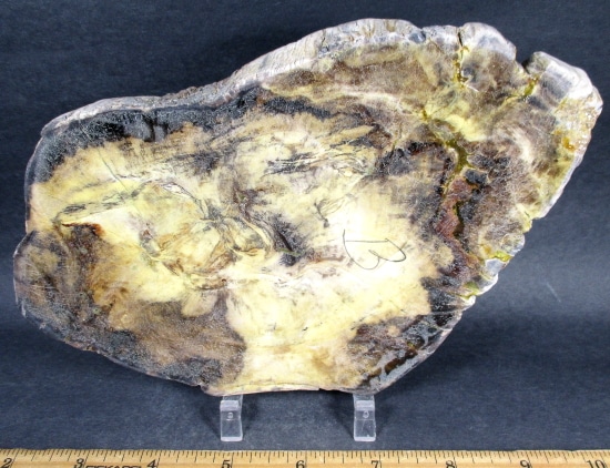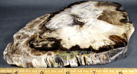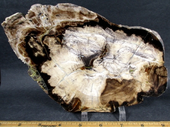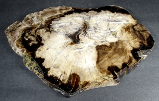 Petrified Wood is a type of a fossil as it consists of fossil wood where all the organic materials have been replaced with minerals while retaining the original structure of the wood.  These minerals are most often Silicates such as Quartz.  Other minerals, Manganese, Iron and Copper, in the water or mud during the petrification process give Petrified Wood a variety of color ranges: black – Carbon; green/blue – Copper; red/brown/yellow – Iron.  Petrified Wood can preserve the original structure of the wood in all its detail all the way down to the microscopic level.  Structures such as tree rings and the various tissues are often observed features.  Although Petrified Wood can be found worldwide, it is rather rare in larger quantities and at times can be difficult to obtain by the average collector.