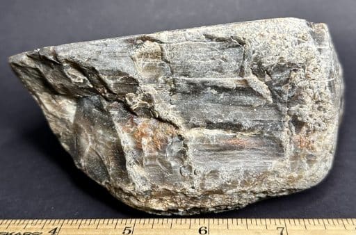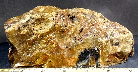 Petrified Wood is a type of a fossil as it consists of fossil wood where all the organic materials have been replaced with minerals while retaining the original structure of the wood.  These minerals are most often Silicates such as Quartz.  Other minerals, Manganese, Iron and Copper, in the water or mud during the petrification process give Petrified Wood a variety of color ranges: black – Carbon; green/blue – Copper; red/brown/yellow – Iron.  Petrified Wood can preserve the original structure of the wood in all its detail all the way down to the microscopic level.  Structures such as tree rings and the various tissues are often observed features.  Although Petrified Wood can be found worldwide, it is rather rare in larger quantities and at times can be difficult to obtain by the average collector.