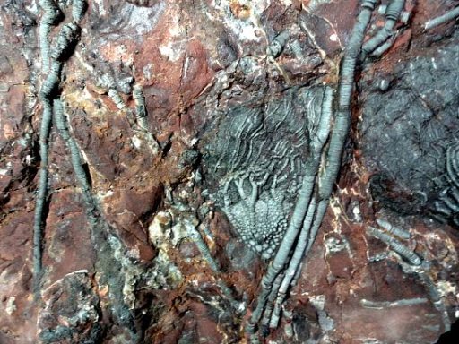 Crinoids are a fascinating species, and this fossil is equally as fascinating. Crinoids are echinoderms and are a filter feeding, plant like marine animal and first appeared on the earth’s surface over 500 million years ago in the Cambrian Era. Stemmed crinoids flourished in the Paleozoic seas with their remains abundant in Paleozoic rock sequences. Today a close relative of the Crinoid still survives at the bottom of the ocean and is usually referred to as a “sea lily.”