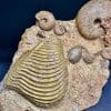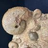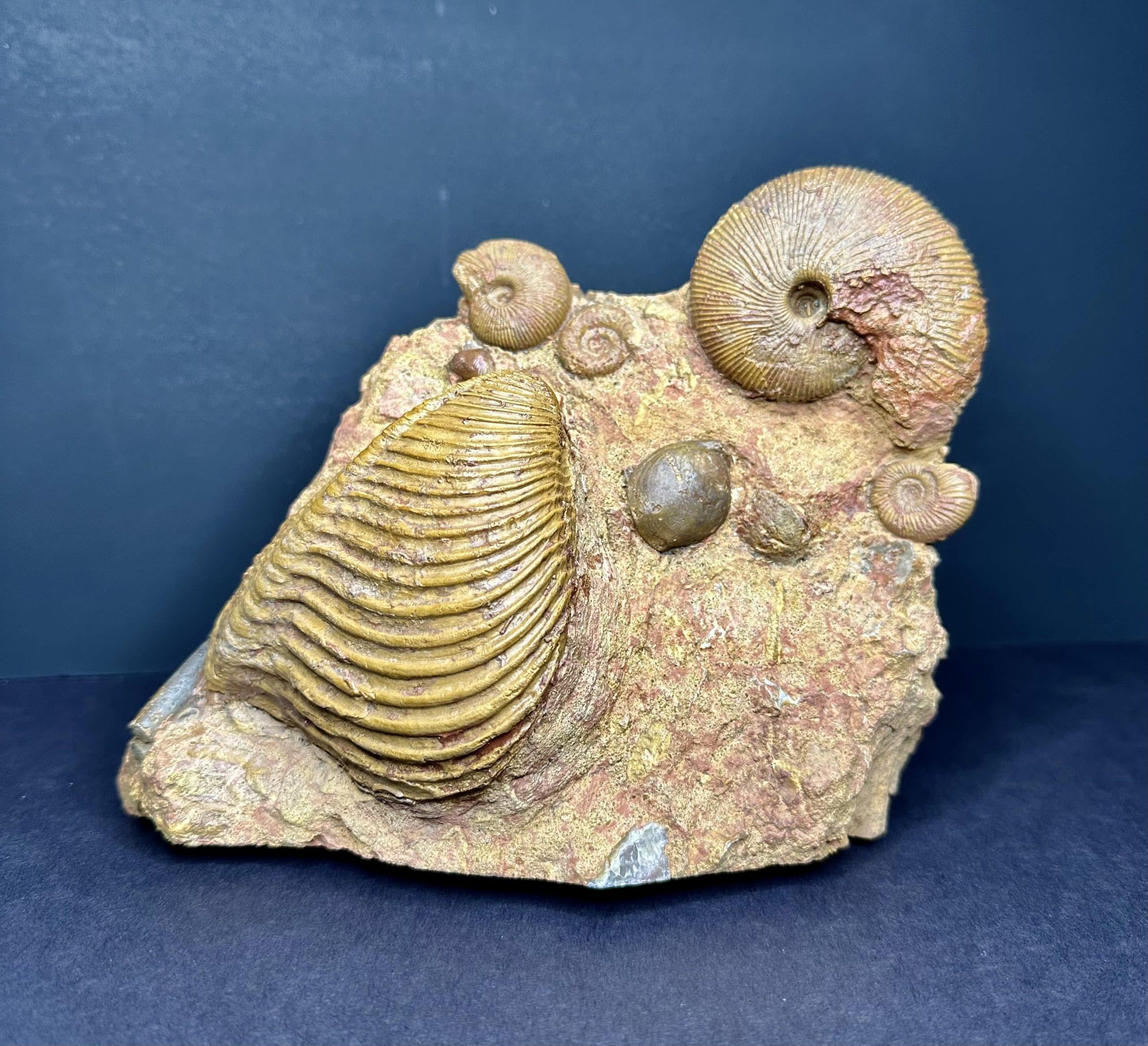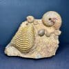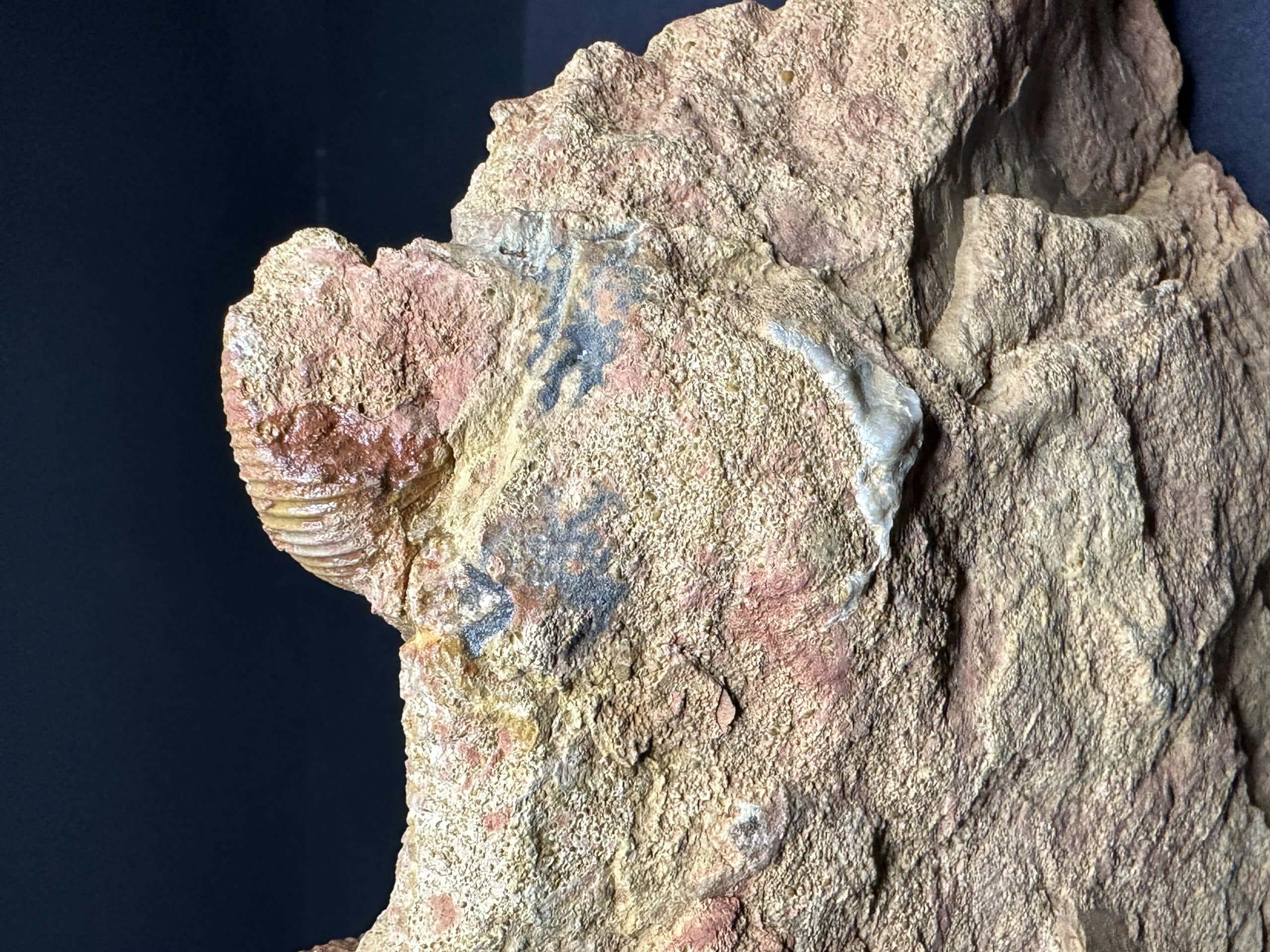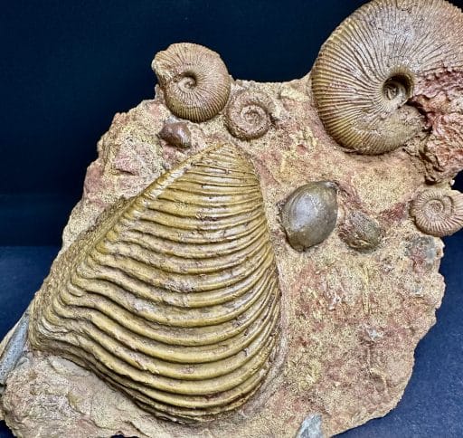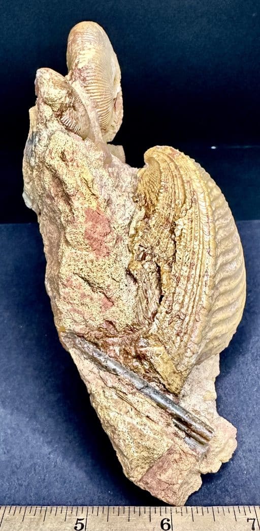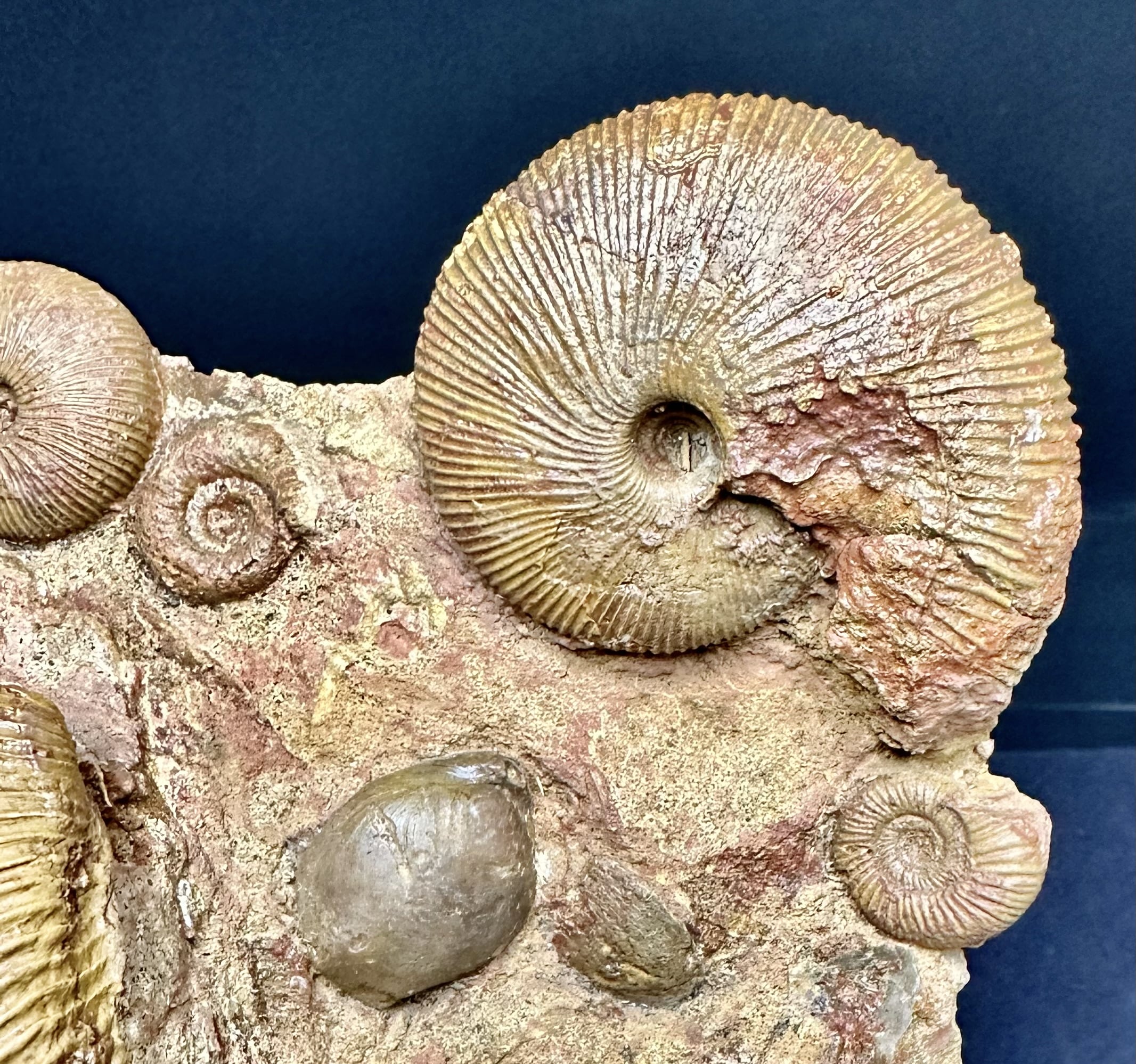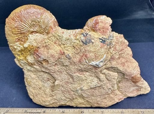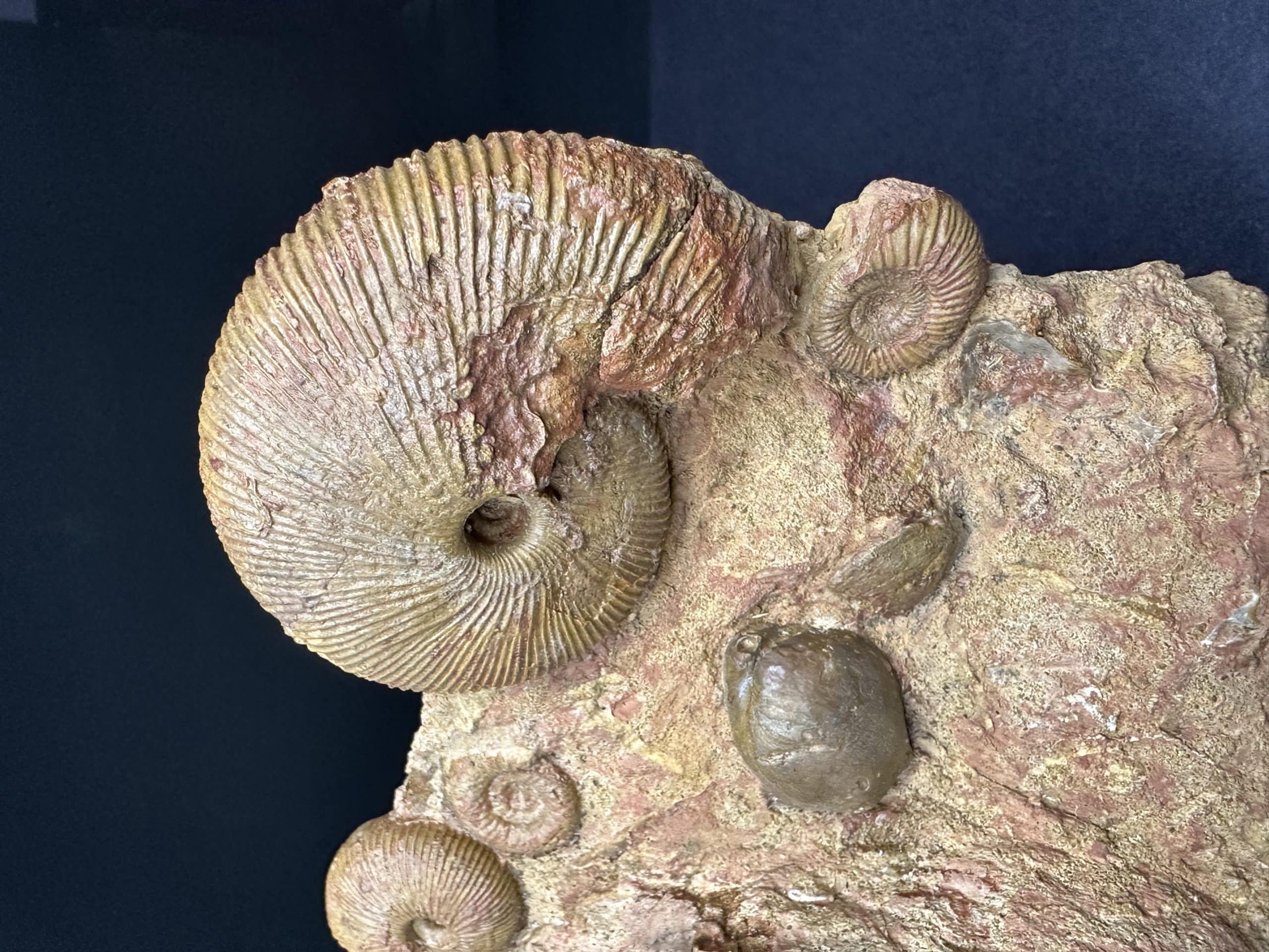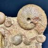 Ammonites are extinct members of the cephalopod group of mollusks. Only a limited number of species have survived to the present day which includes the squid and the chambered nautilus. Ammonites had a multi-chambered shell, and added more chambers as it grew, always living in the outer chamber. They lived in the Cretaceous period some 63 to 130 million years ago.