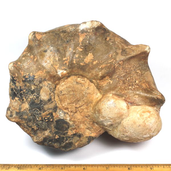 Ammonites are extinct members of the cephalopod group of mollusks. Only a limited number of species have survived to the present day which includes the squid and the chambered nautilus. Ammonites had a multi-chambered shell, and added more chambers as it grew, always living in the outer chamber.  They lived in the Cretaceous period some 63 to 130 million years ago.
