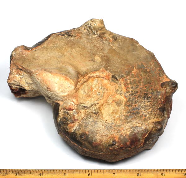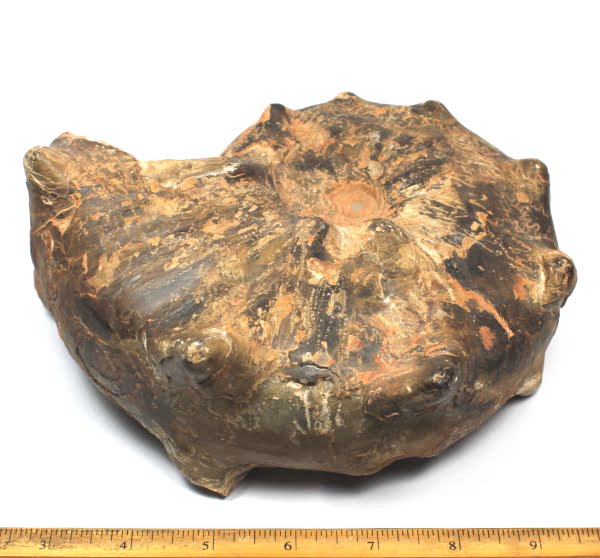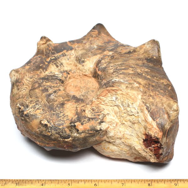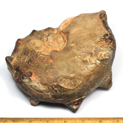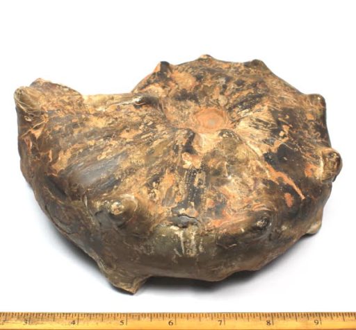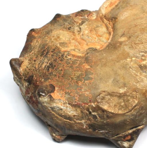 Ammonites are extinct members of the cephalopod group of mollusks. Only a limited number of species have survived to the present day which includes the squid and the chambered nautilus. Ammonites had a multi-chambered shell, and added more chambers as it grew, always living in the outer chamber. They lived in the Cretaceous period some 63 to 130 million years ago.