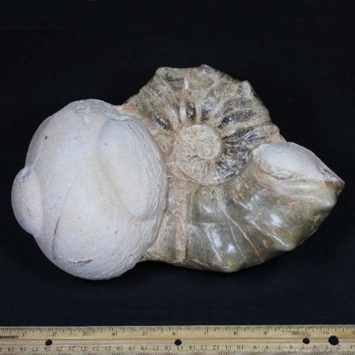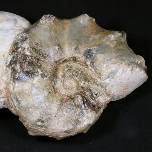 Ammonites are extinct members of the cephalopod group of mollusks. Only a limited number of species have survived to the present day which includes the squid and the chambered nautilus. Ammonites had a multi-chambered shell, and added more chambers as it grew, always living in the outer chamber. They lived in the Cretaceous period some 63 to 130 million years ago.