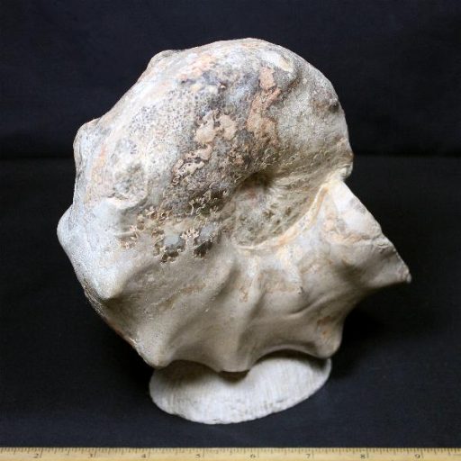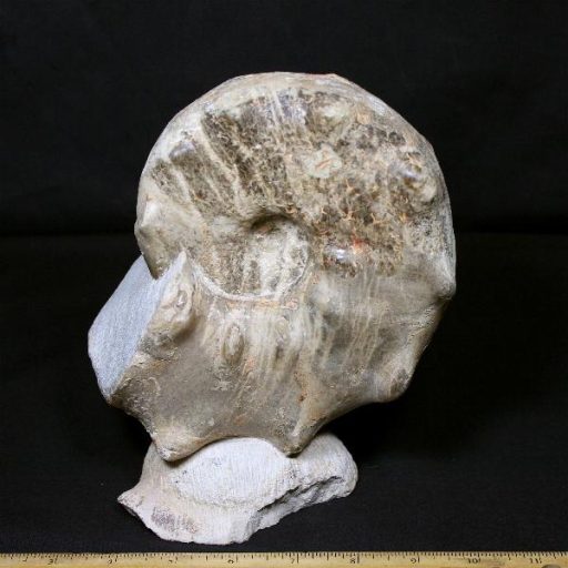 Ammonites are extinct members of the cephalopod group of mollusks. Only a limited number of species have survived to the present day which includes the squid and the chambered nautilus. Ammonites had a multi-chambered shell, and added more chambers as it grew, always living in the outer chamber. They lived in the Cretaceous period some 63 to 130 million years ago.