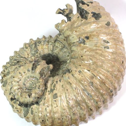 Ammonites are extinct members of the cephalopod group of mollusks. Only a limited number of species have survived to the present day which includes the squid and the chambered nautilus. Ammonites had a multi-chambered shell, and added more chambers as it grew, always living in the outer chamber.  They lived in the Cretaceous period some 63 to 130 million years ago.