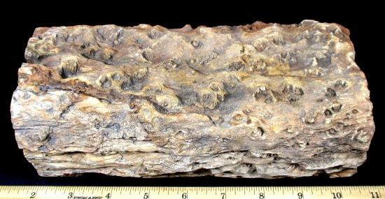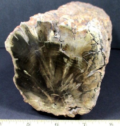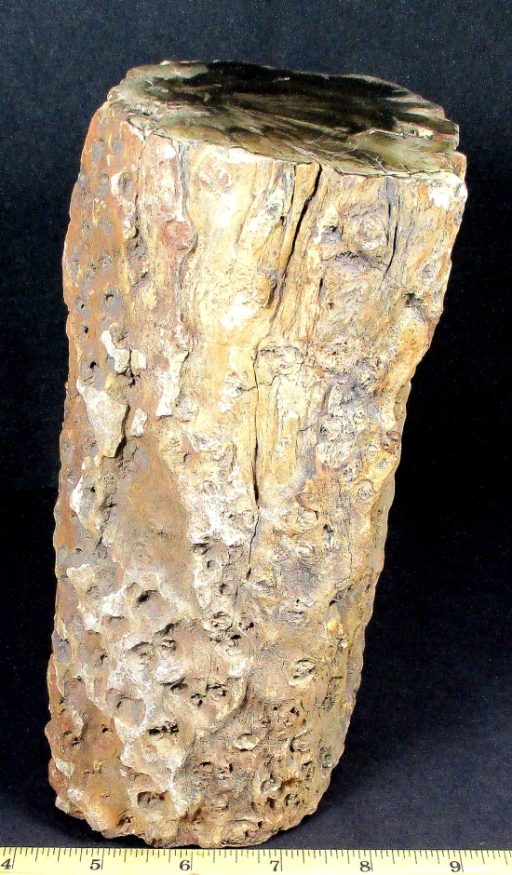 Petrified Wood is a type of a fossil as it consists of fossil wood where all the organic materials have been replaced with minerals while retaining the original structure of the wood. These minerals are most often Silicates such as Quartz. Other minerals, Manganese, Iron and Copper, in the water or mud during the petrification process gives Petrified Wood a variety of color ranges: black – Carbon; green/blue – Copper; red/brown/yellow – Iron. Petrified Wood can preserve the original structure of the wood in all its detail all the way down to the microscopic level. Structures such as tree rings and the various tissues are often observed features. Although Petrified Wood can be found worldwide, it is rather rare in larger quantities and at times can be difficult to obtain by the average collector.