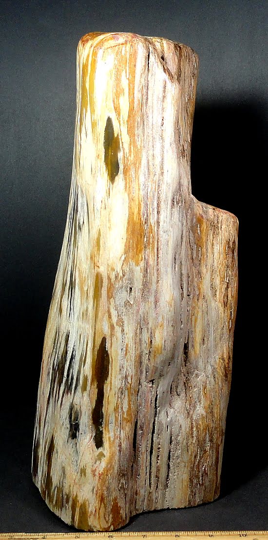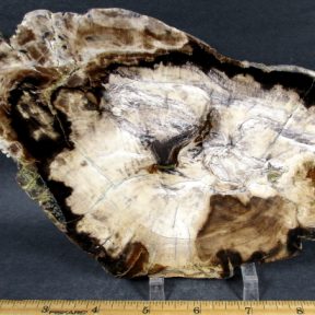 Petrified Wood is a type of a fossil as it consists of fossil wood where all the organic materials have been replaced with minerals while retaining the original structure of the wood.  These minerals are most often Silicates such as Quartz.  Other minerals, Manganese, Iron and Copper, in the water or mud during the petrification process gives Petrified Wood a variety of color ranges: black – Carbon; green/blue – Copper; red/brown/yellow – Iron.  Petrified Wood can preserve the original structure of the wood in all its detail all the way down to the microscopic level.  Structures such as tree rings and the various tissues are often observed features.  Although Petrified Wood can be found worldwide, it is rather rare in larger quantities and at times can be difficult to obtain by the average collector.