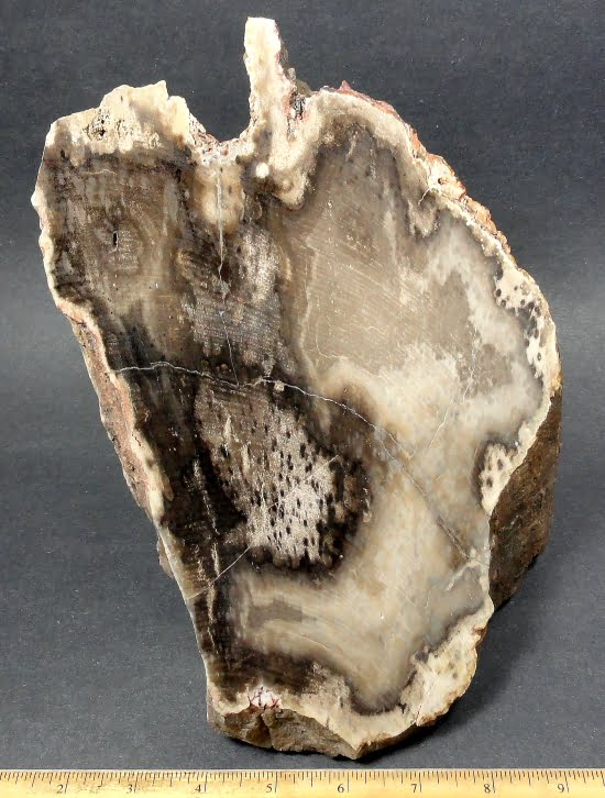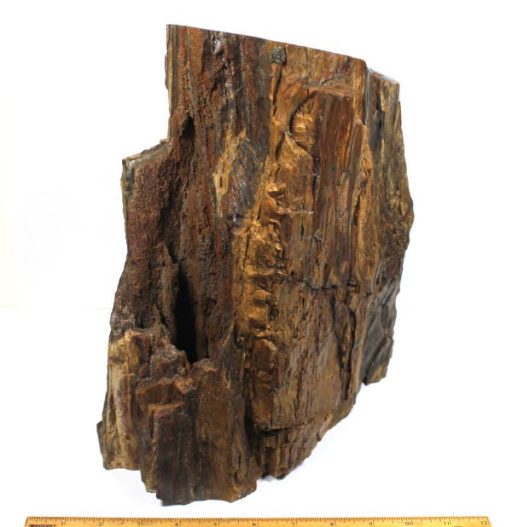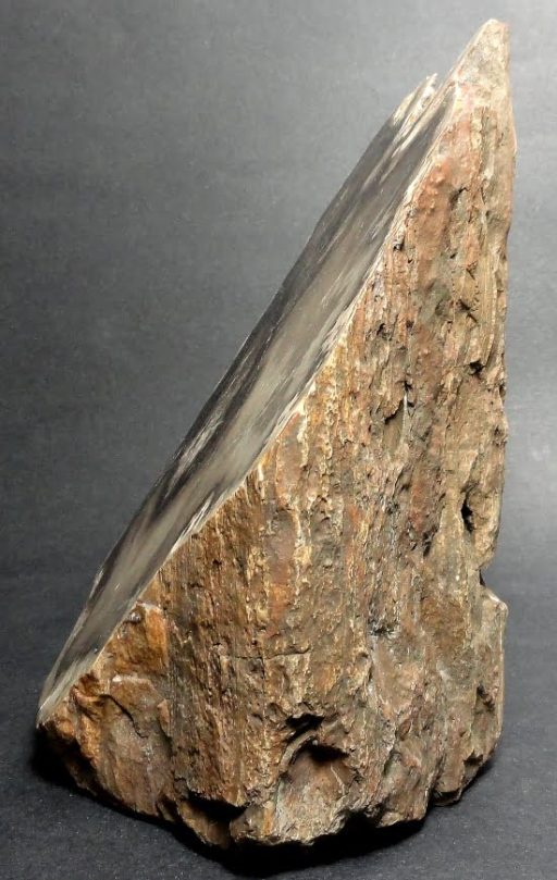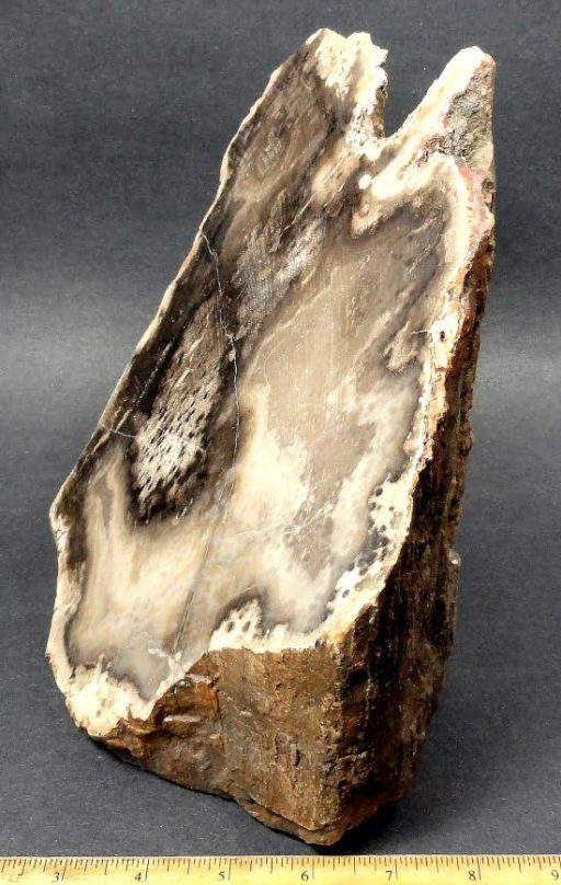 Here is an exceptional specimen of petrified wood from Oregon. This item has gorgeous wood grain highlights mixed in around the various Tan, Grey and Brown colors with outstanding character on all sides. The piece has a good polish on the angled top side bringing out the unique unmatched attributes of this specimen.  The petrified wood measures approximately 6 1/8″ wide x 4 1/4″ x 5 1/4″ tall and weighs over 10 1/2 lbs.  A truly fantastic piece!  See our shipping notes at the bottom of the page.