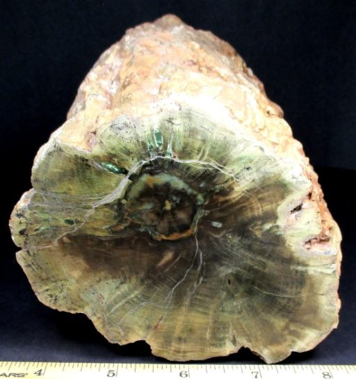 Petrified Wood is a type of a fossil as it consists of fossil wood where all the organic materials have been replaced with minerals while retaining the original structure of the wood. These minerals are most often Silicates such as Quartz. Other minerals, Manganese, Iron and Copper, in the water or mud during the petrification process gives Petrified Wood a variety of color ranges: black – Carbon; green/blue – Copper; red/brown/yellow – Iron. Petrified Wood can preserve the original structure of the wood in all its detail all the way down to the microscopic level. Structures such as tree rings and the various tissues are often observed features. Although Petrified Wood can be found worldwide, it is rather rare in larger quantities and at times can be difficult to obtain by the average collector.