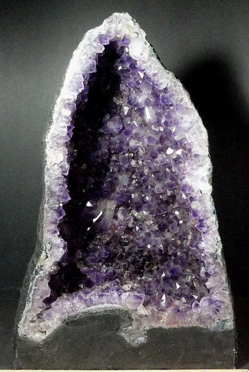 This is an absolutely gorgeous Amethyst Cathedral with stunning Purple Amethyst crystals of the highest quality. The pristine Amethyst crystals are further enhanced by the unique shape with the lovely Purple crystals in different areas providing unmatched personality and character. This amazing piece measures approximately 11″ wide x 7 1/4″ x  7″ tall and weighs over 35 1/2 pounds. Truly a rare beauty that will grace any area!