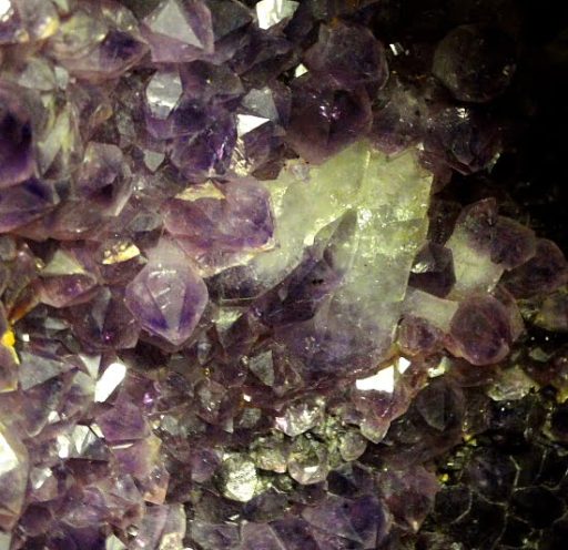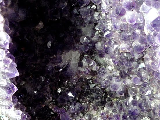 Amethyst is a purple variety of Quartz often used as an ornament.  Upon exposure to heat, Amethyst generally becomes yellow, which some refer to as Citrine or “burnt” Amethyst.  It occurs in color from a light, slightly pinkish violet to a deep grape purple.  It is widely distributed as a mineral, but fine, clear specimens that are suitable for cutting as ornamental stones.