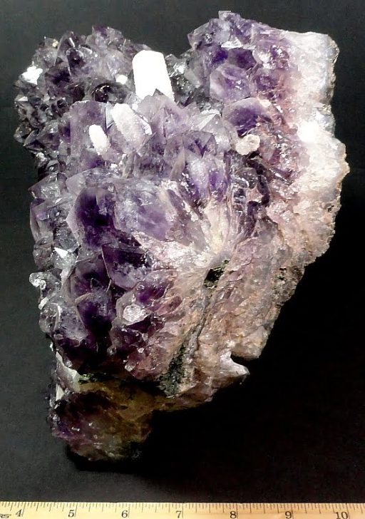 This exceptional Amethyst piece is a dazzling beauty. It has gorgeous pristine deep Purple crystals with enticing color.  It not only has amazing clusters of these Amethyst crystals but a fabulous sugary White Calcite Crystal adding to it’s unique character. This marvelous piece measures  approximately 13 3/8″ x 10″ wide x 5″ deep.  It weighs over 16 pounds.  It is a nice majestic piece that makes an excellent display item.