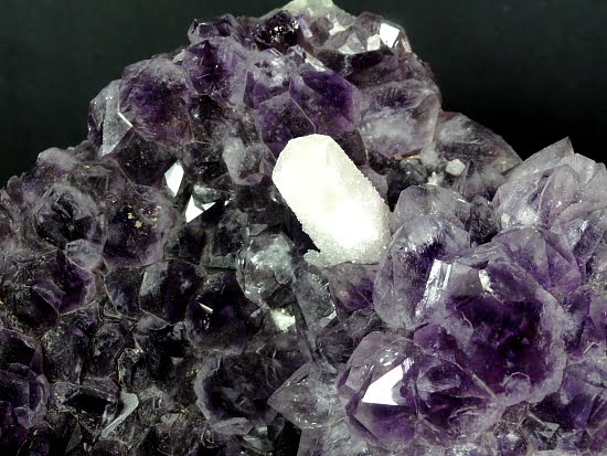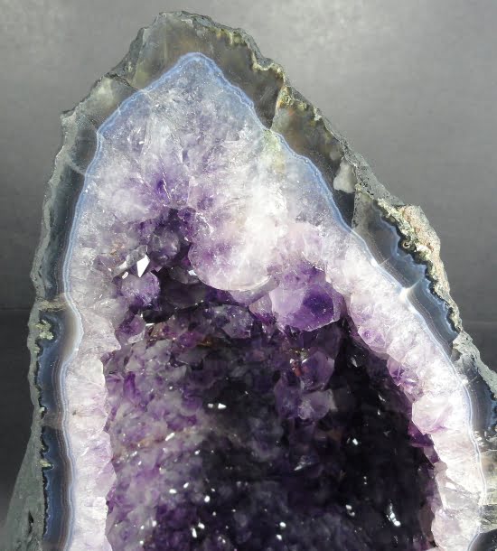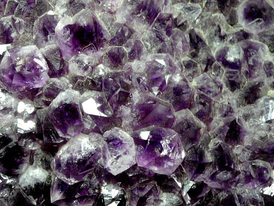 Amethyst is a purple variety of Quartz often used as an ornament.  Upon exposure to heat, Amethyst generally becomes yellow, which some refer to as Citrine or “burnt” Amethyst.  It occurs in color from a light, slightly pinkish violet to a deep grape purple.  It is widely distributed as a mineral, but fine, clear specimens that are suitable for cutting as ornamental stones.