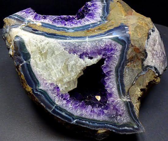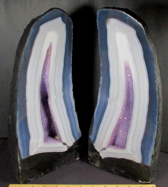 Here’s another amazing Amethyst Set with great rich purple color, beautiful banding and fabulous design. The set measures approximately 14″ tall x 10 1/8″ x 6 1/4″ and weighs nearly 33 1/4 pounds. Amazing!