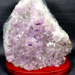 Amethyst is a purple variety of Quartz often used as an ornament.  Upon exposure to heat, Amethyst generally becomes yellow, which some refer to as Citrine or “burnt” Amethyst.  It occurs in color from a light, slightly pinkish violet to a deep grape purple.  It is widely distributed as a mineral, but fine, clear specimens that are suitable for cutting as ornamental stones.