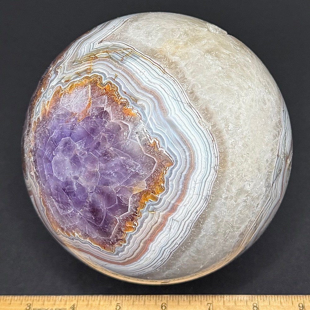 Agates mostly occur as nodules in volcanic rocks or waters containing silica in solution possibly derived from the decomposition of silicates in the lava. The siliceous matter is deposited in regular layers resulting in the banded or striped formation.