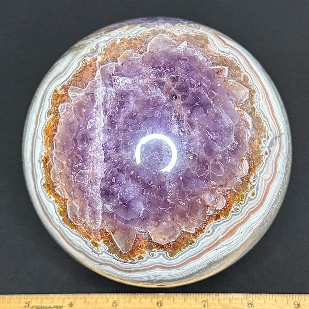 Amethyst is a purple variety of Quartz often used as an ornament. It occurs in color from a light, slightly pinkish violet to a deep grape purple. Upon exposure to heat, Amethyst generally becomes yellow, which some refer to as Citrine or “burnt” Amethyst. It is widely distributed as a mineral, but fine, clear specimens that are suitable for cutting as ornamental stones.