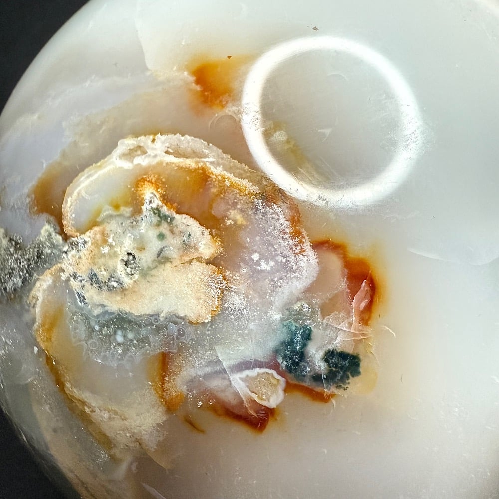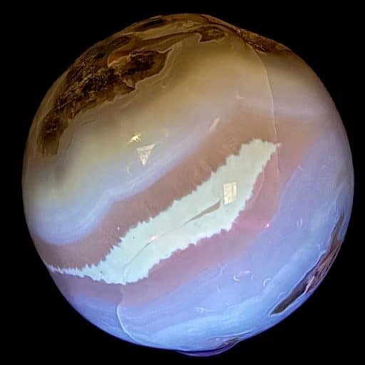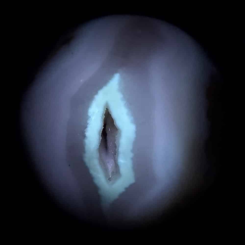 Appearance: It has amazing banding, color, crystal cavity and design. UV light changes its color.