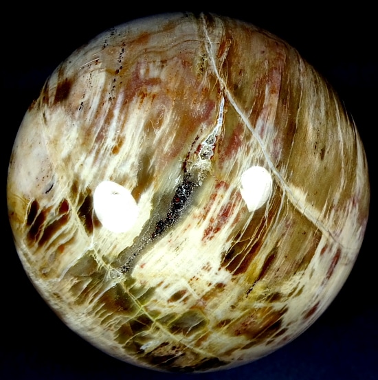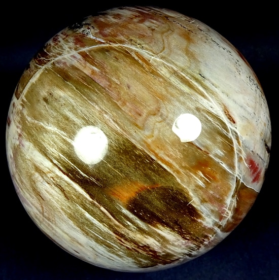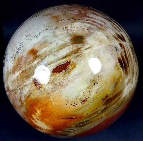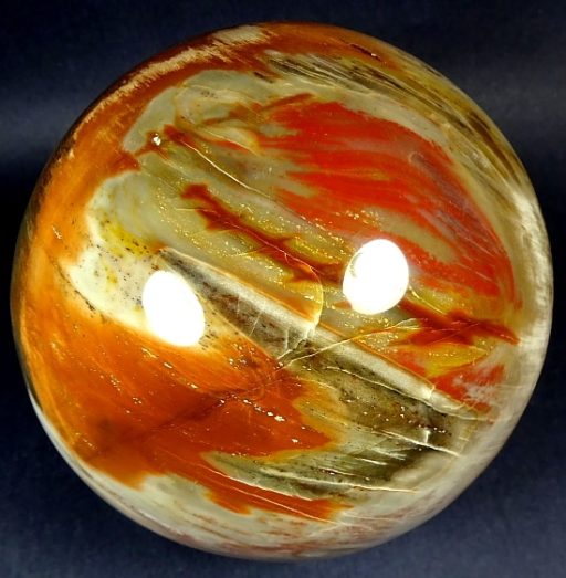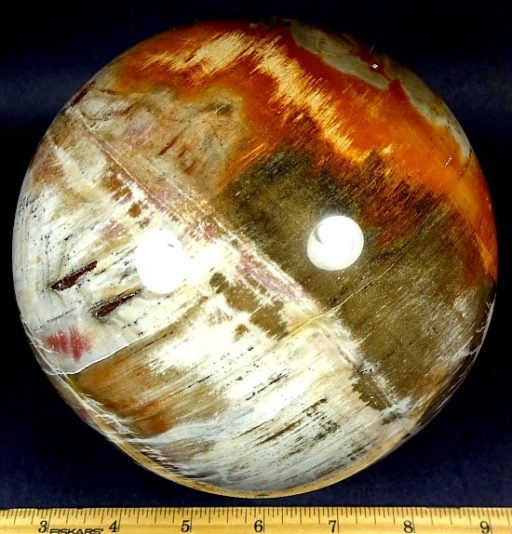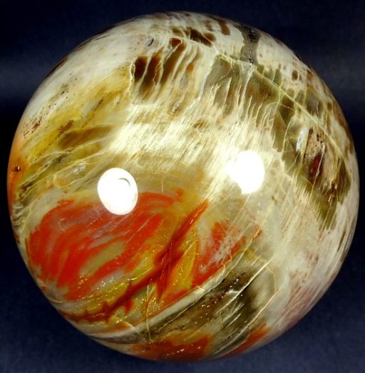 This is an interesting, very cool Petrified Wood sphere.  It measures 5 5/8″ in diameter, weighs over 9 pounds and has a nice polish.  The sphere has beautiful rich Dark Red colors with Tan and Brown accents as well. There are several small natural crystal areas that add unmatched character of this stunning sphere. Very beautiful!