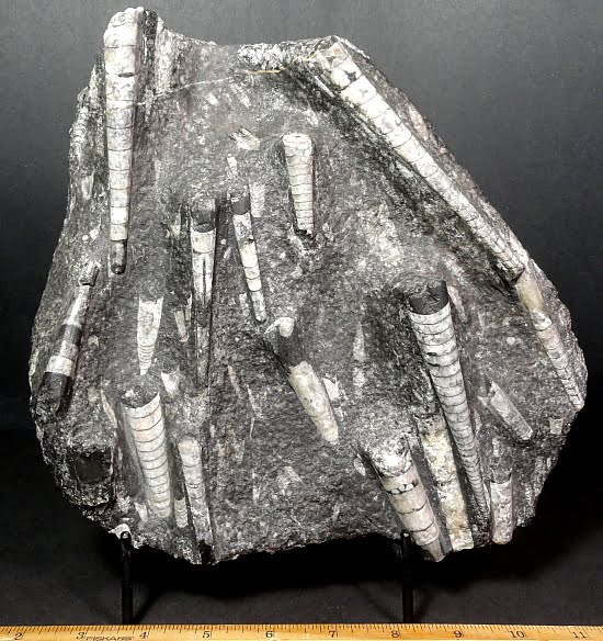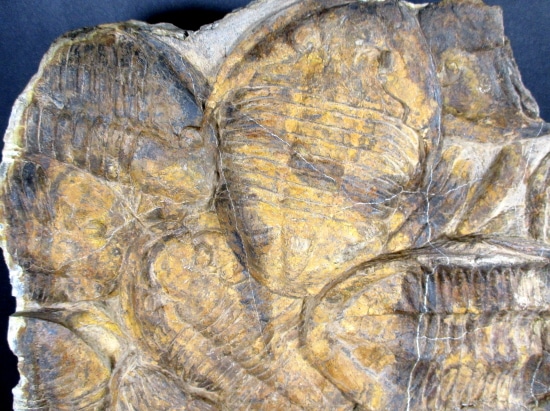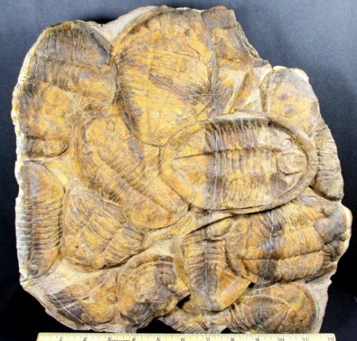 Trilobites are hard-shelled, segmented members of Arthropoda and the class Trilobita that existed throughout almost all of the Paleozoic era, flourishing in the earlier part of it and slowly declining in the later part. The most common trilobites were about 2-7 cm (1-3.5 in) in length, but over their long history they ranged in size from 1 mm-72 cm (.04 in-28 in) and exhibited so much variation that they are classified into nine (or possibly ten) orders with more than 15,000 species. The smallest species are presumed to have been part of the free-floating plankton, while the more common, mid-sized species probably walked along the sea floor filtering mud to obtain food, and the larger varieties may have been swimming predators.
