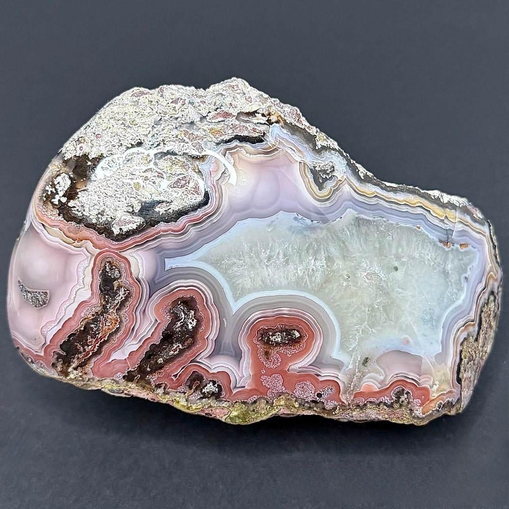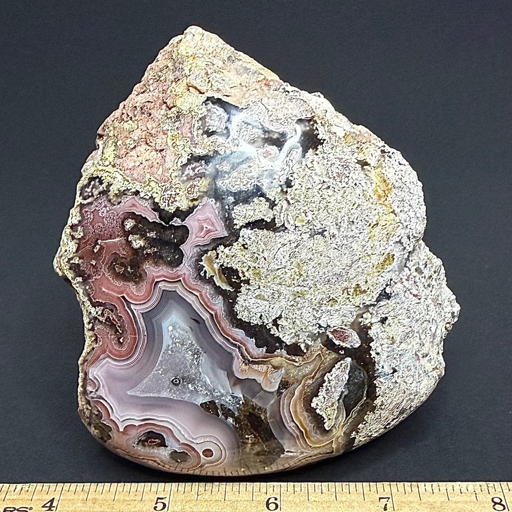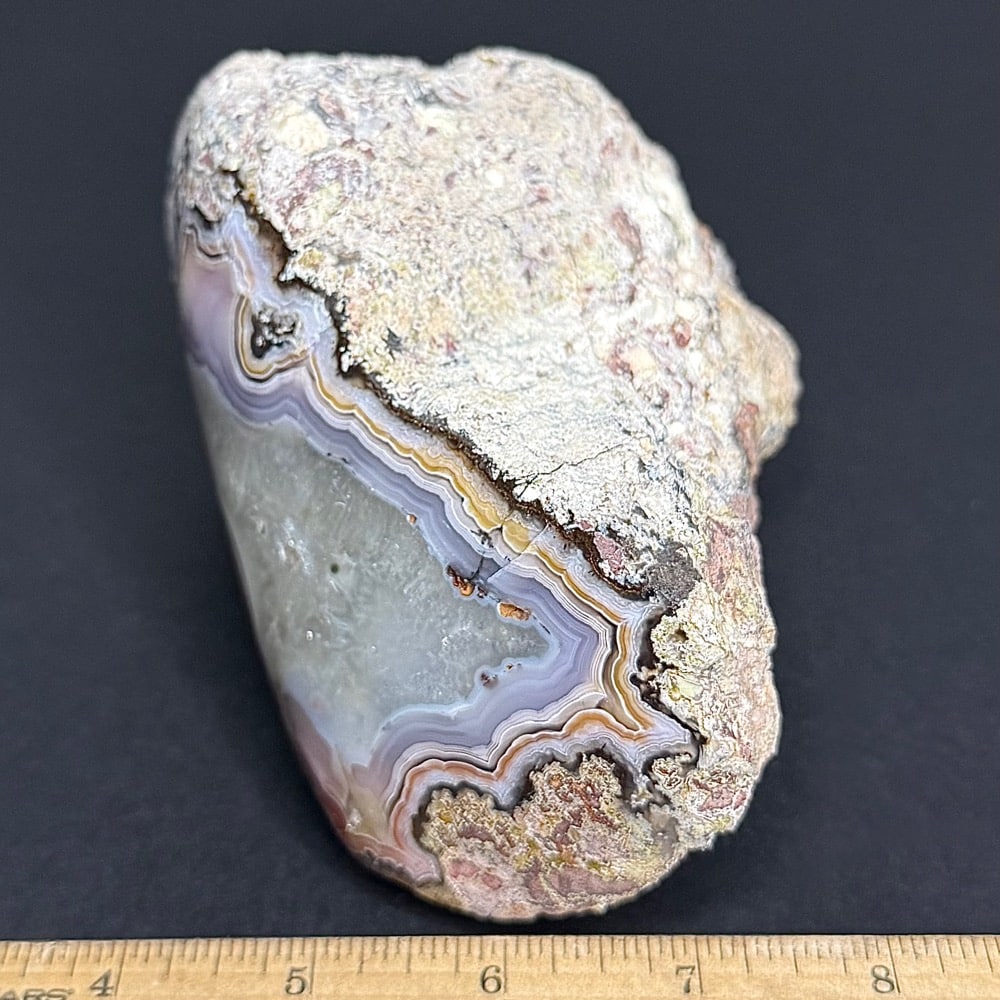 Laguna Agate is on of the most highly praised banded agates in the world. It is known for its extremely tight banding and vibrant shades of red and scarlet. Laguna Agate is a variety of banded Chalcedony, a mineral of the Quartz family. Though predominantly scarlet, its layers may contain shades of deep red, milky white, yellow, gold and brown.