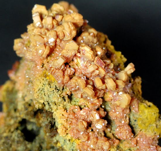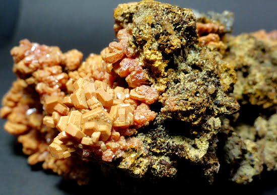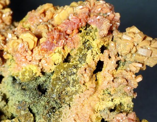 Vanadinite is a mineral belonging to the Apatite group of Phosphate minerals. It is one of the main industrial Ores of the metal Vanadium and a minor source of Lead. Vanadinite is relatively uncommon and is associated with Galena, Wulfenite, Limonite and Barite. It is usually bright red or orange-red in color although it may sometimes be brown, red-brown, grey, yellow or colorless.