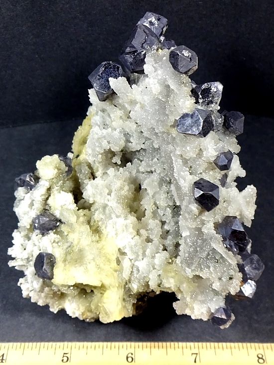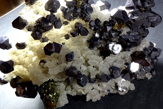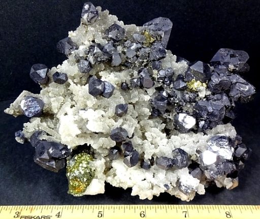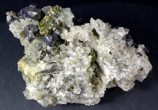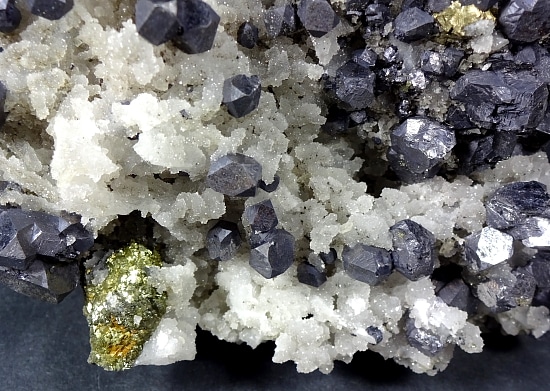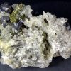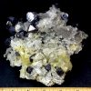 Galena is the natural mineral form of Lead Sulfide. It is the most important Lead ore mineral and is one of the most abundant and widely distributed sulfide minerals. It is often associated with Sphalerite, Calcite and Fluorite. Galena deposits often contain significant amounts of Silver, Zinc, Cadmium, Antimony Arsenic and Bismuth. It is used as a semiconductor in early wireless communication systems. It is usually dark grey to black in color with a shiny iridescence.