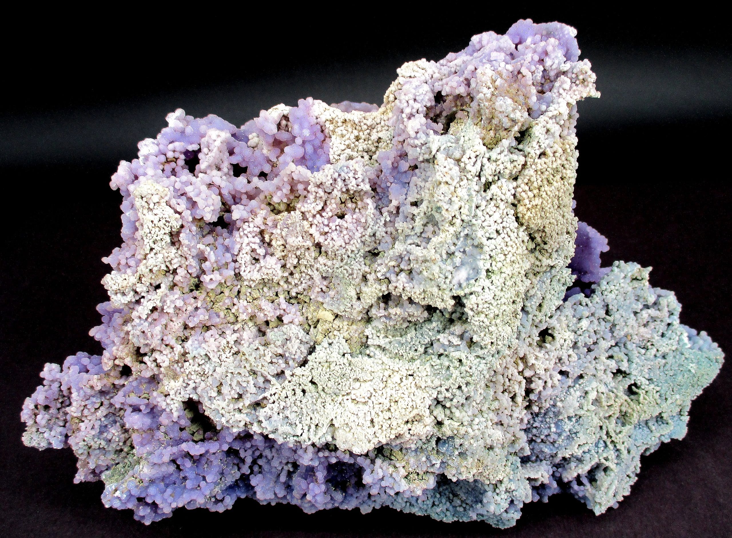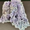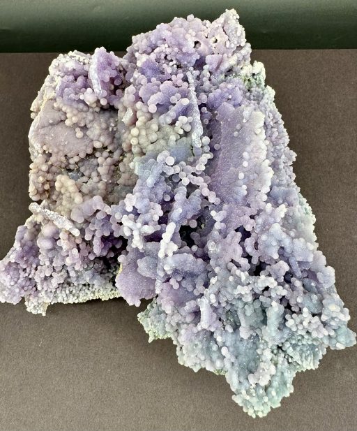 Chalcedony is a cryptocrystalline form of silica, composed of very fine intergrowths of the minerals quartz and moganite. Chalcedony has a waxy luster, and may be semitransparent or translucent. It can assume a wide range of colors, but those most commonly seen are white to gray, grayish-blue or a shade of brown ranging from pale to nearly black.