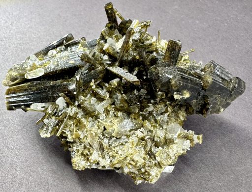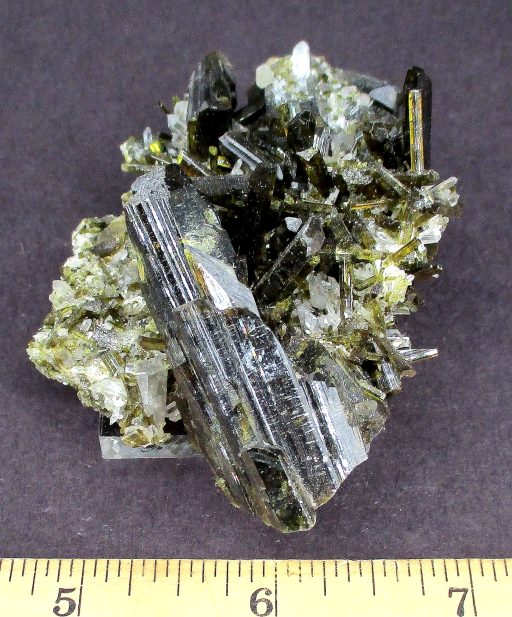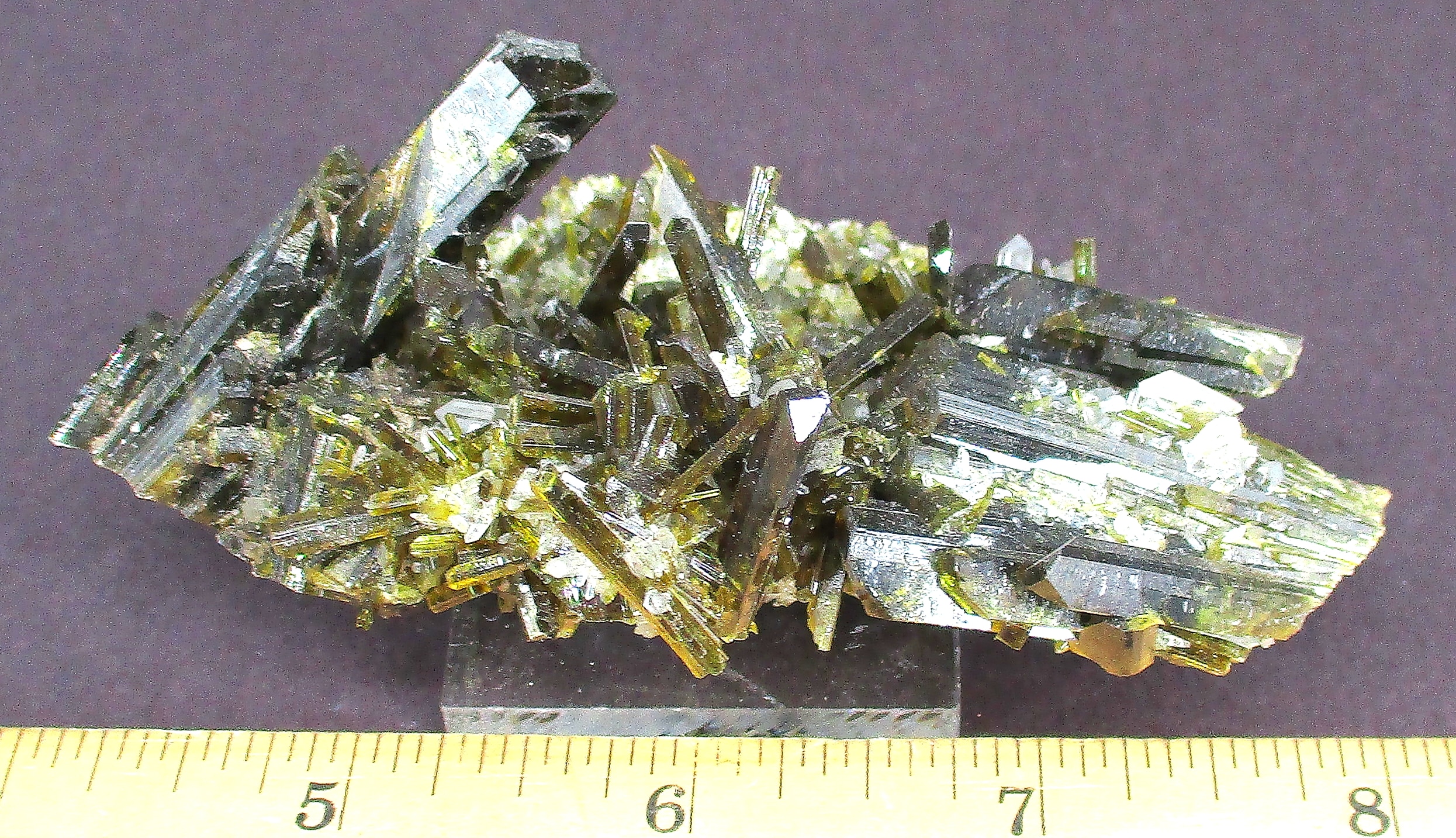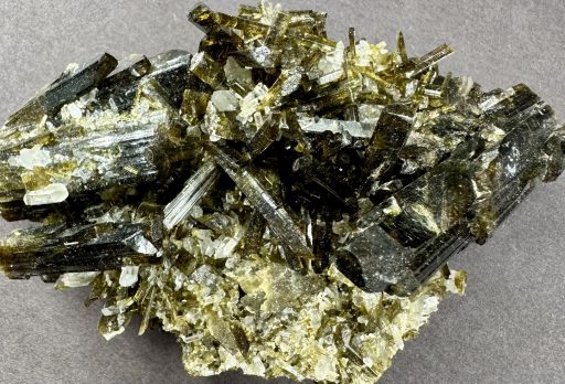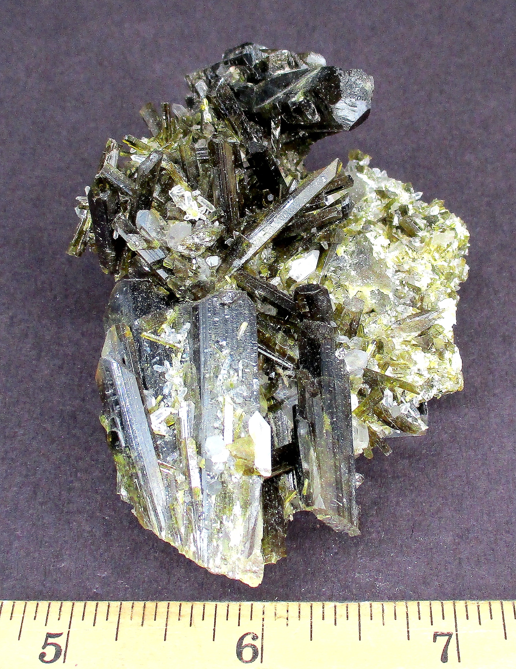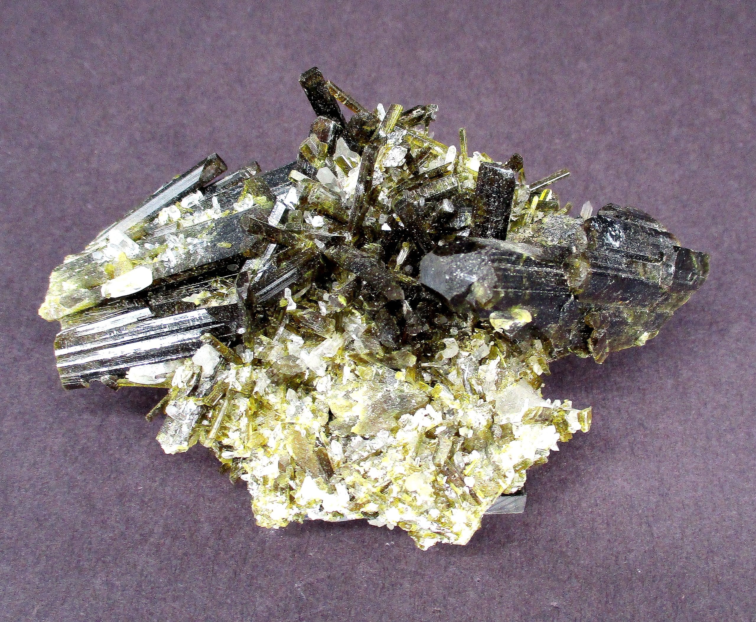 Epidote is an abundant rock-forming mineral, but one of the secondary origin. Many of the characters of the mineral vary with the amount of iron present. Prismatic, columnar crystals, often shiny, finely striated faces. The color is green, gray, brown or nearly black but usually a characteristic shade of yellowish-green or pistachio green.
