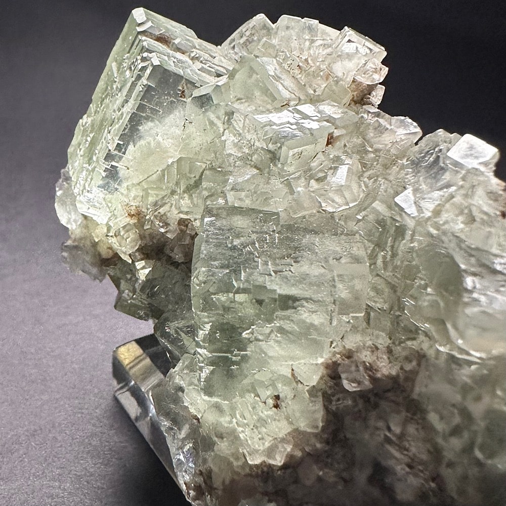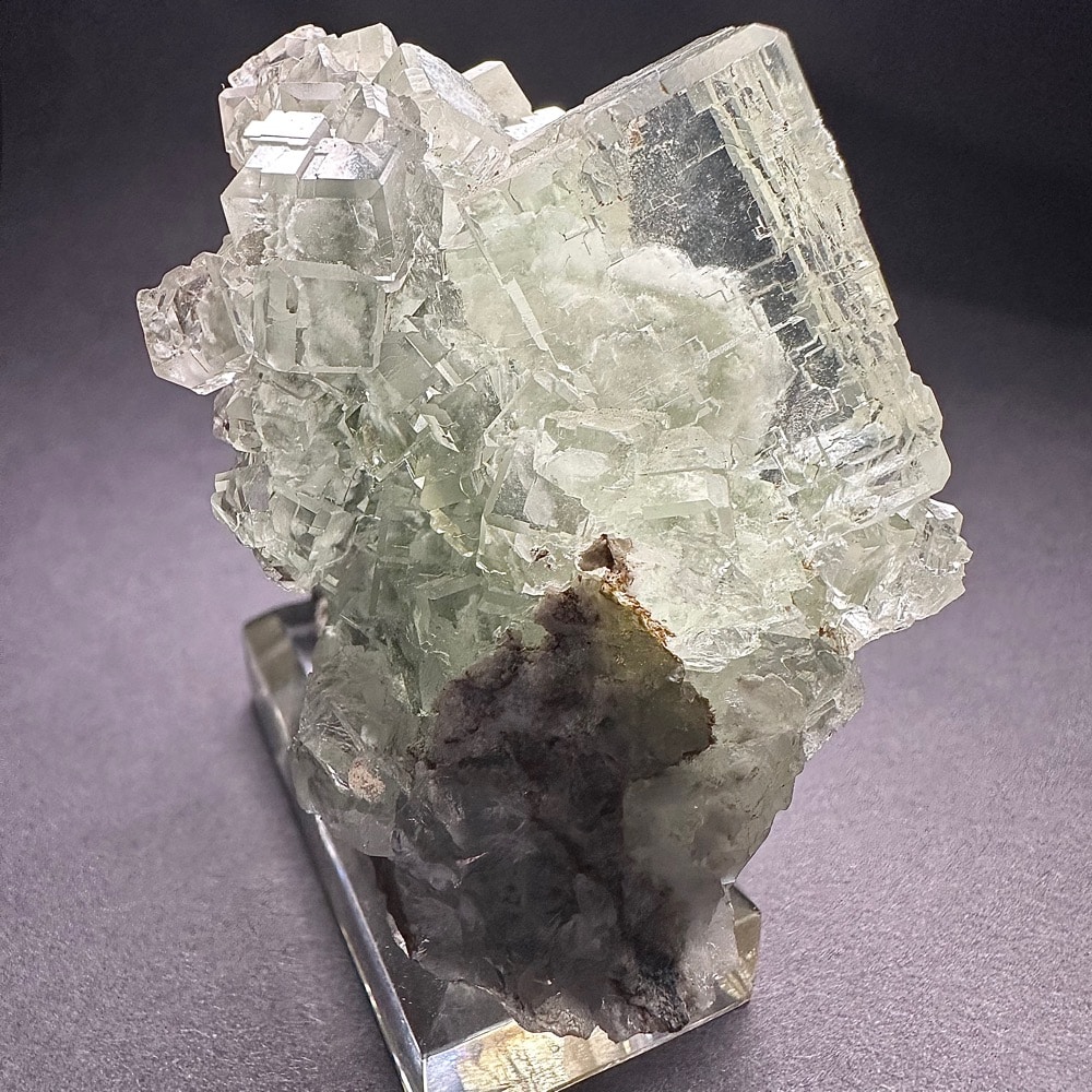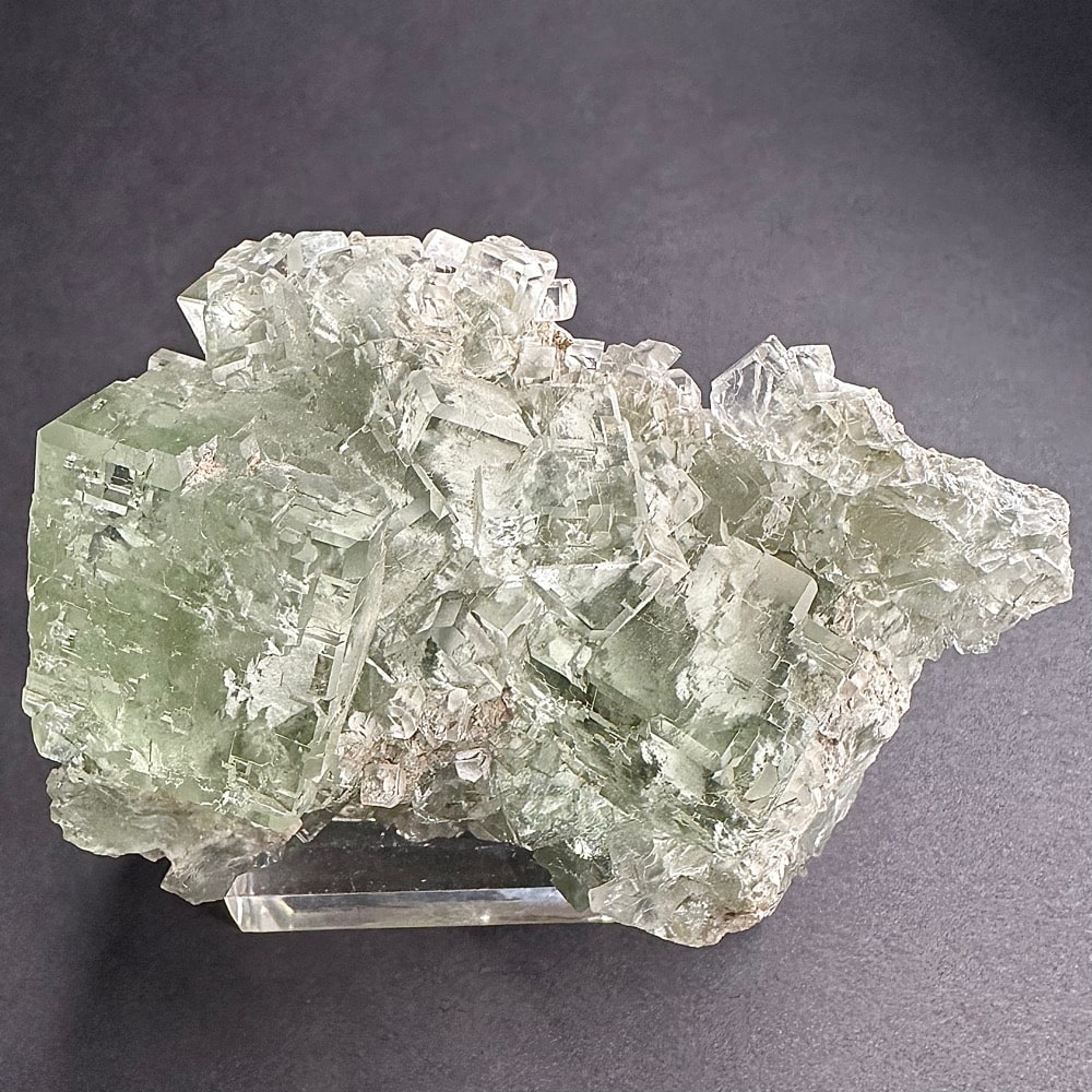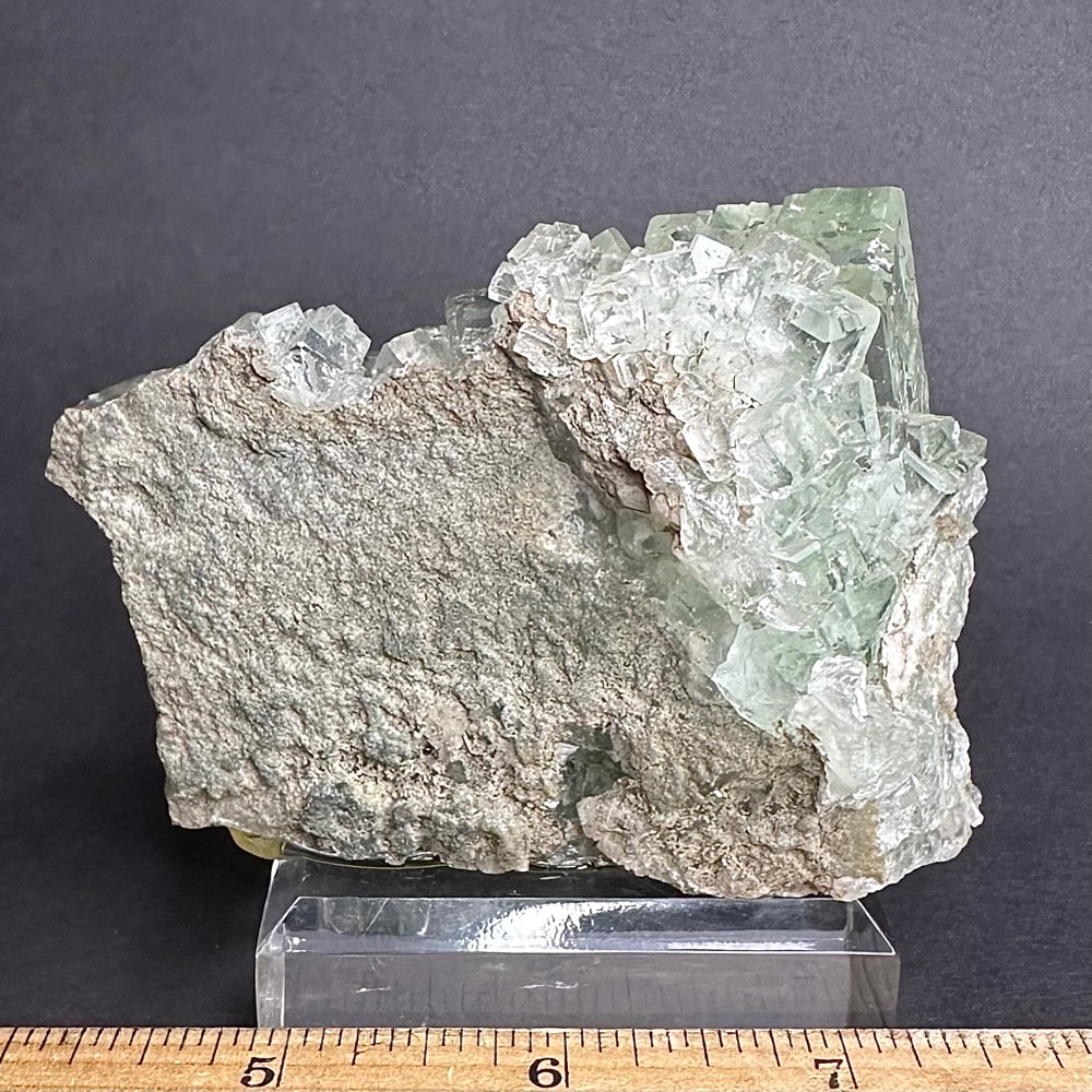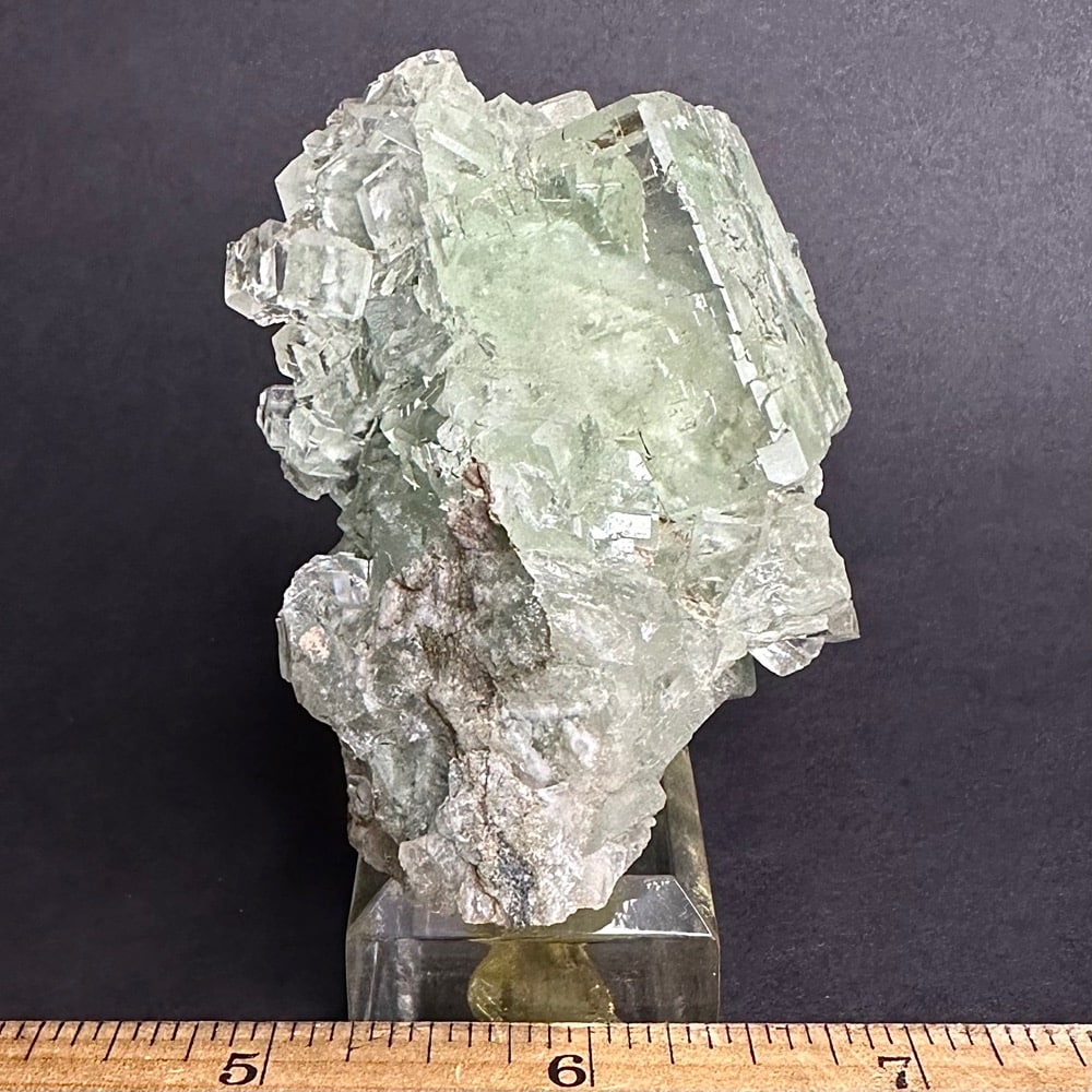 Appearance: Exceptional clarity, inclusions and mesmerizing design. It also will fluoresce a bluish purple under a LW/UV light. Comes on a plastic mount for display.