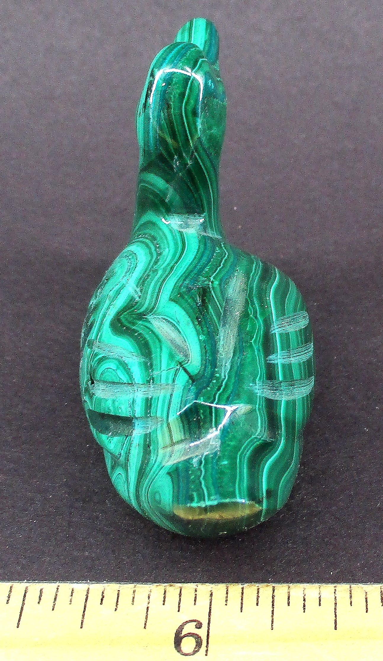 Malachite is a Copper Carbonate mineral that often forms botryoidal, fibrous or stalagmitic masses. It is often the result of the weathering of Copper Ores and is commonly found with Azurite, Goethite and Calcite. It is typically associated with Copper deposits including Limestone which is the source of the Carbonate. Malachite is found in many regions worldwide and is usually shaded green in color.