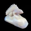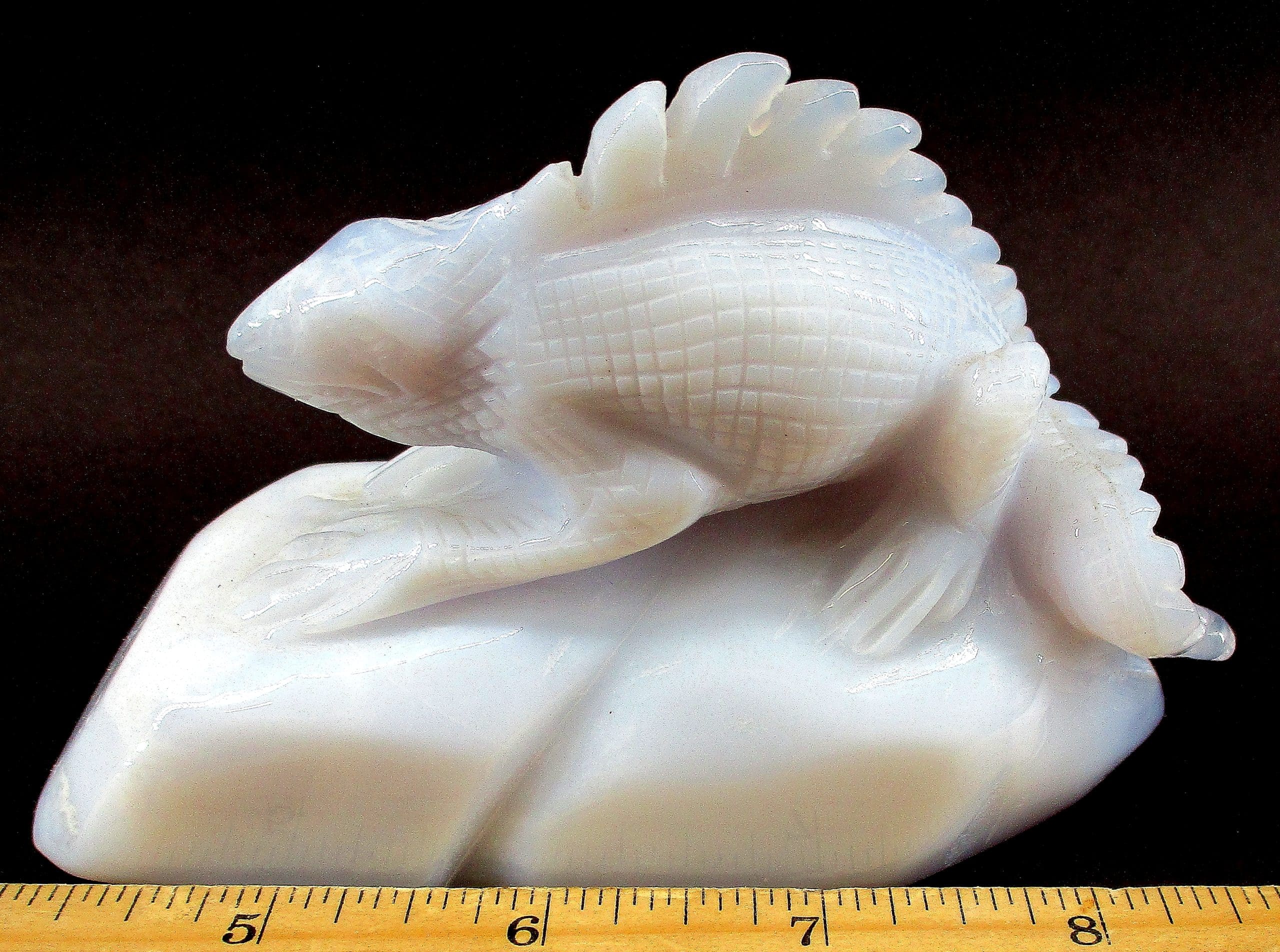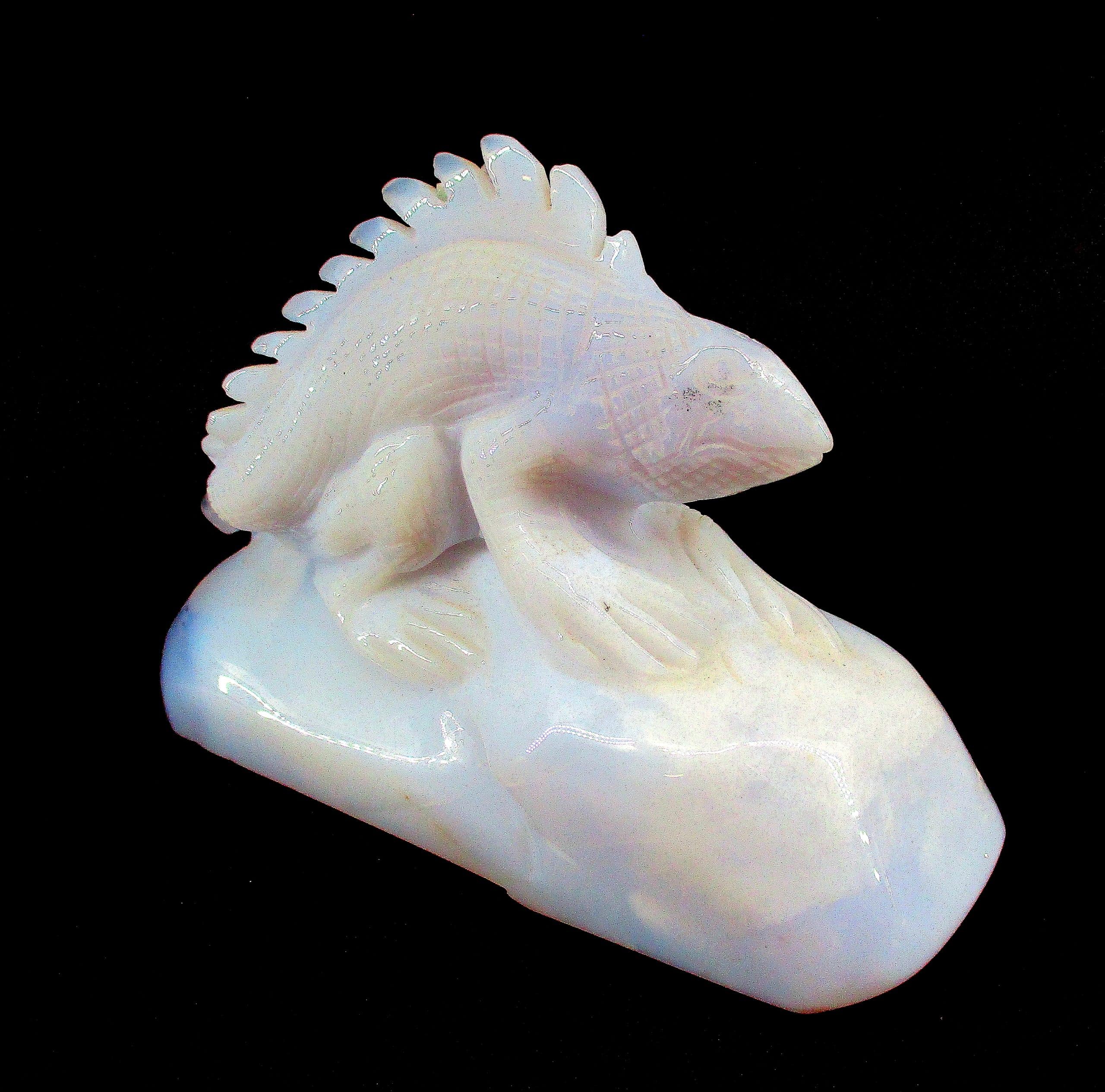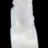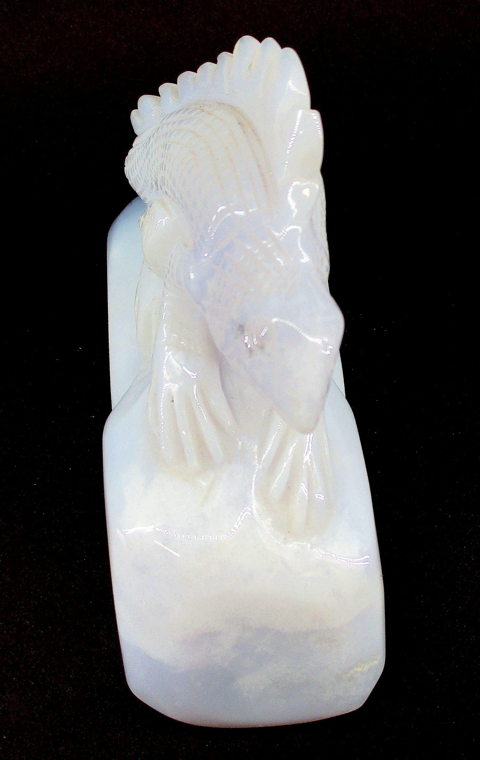 Chalcedony is a cryptocrystalline form of silica, composed of very fine intergrowths of the minerals quartz and moganite. Chalcedony has a waxy luster, and may be semitransparent or translucent. It can assume a wide range of colors, but those most commonly seen are white to gray, grayish-blue or a shade of brown ranging from pale to nearly black.