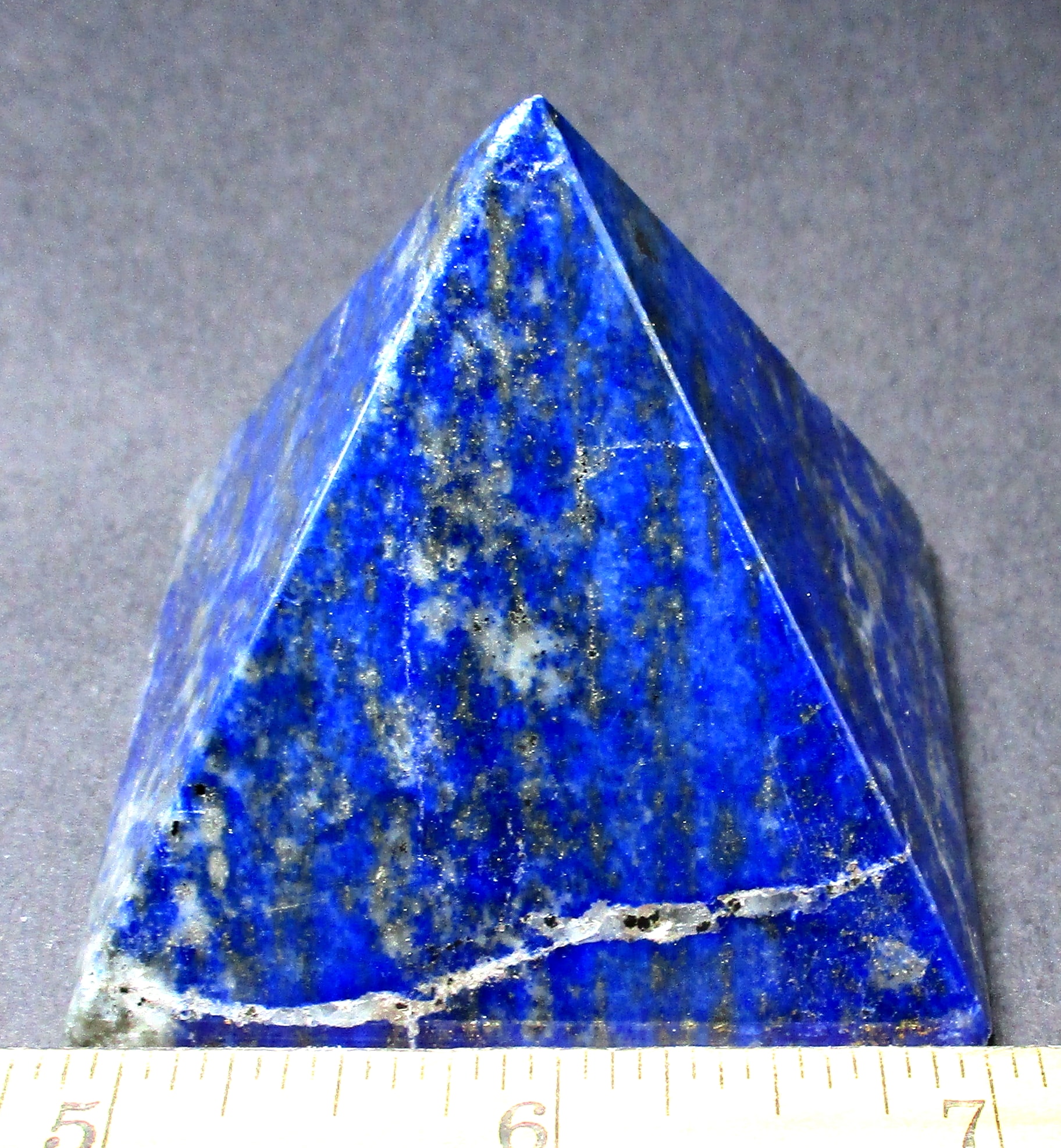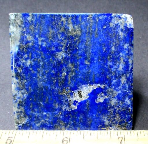Lapis is a rock and not a mineral because it is made up from various other minerals. To be a mineral it would have one constituent only, and Lapis has several including Lazurite, Sodium, Aluminum, Silicon, Oxygen, Sulfur and Chlorine. Most Lapis contains Calcite, Sodalite and Pyrite. The best color is an intense blue that is lightly dusted with small flecks of Pyrite. Lapis takes an excellent polish and has been made into jewelry, carvings, boxes, mosaics and ornamental objects.