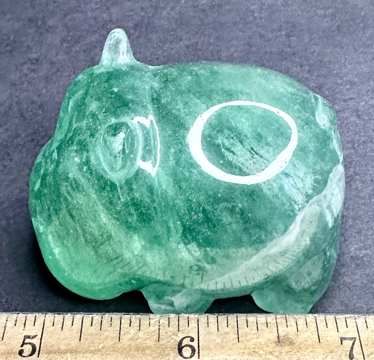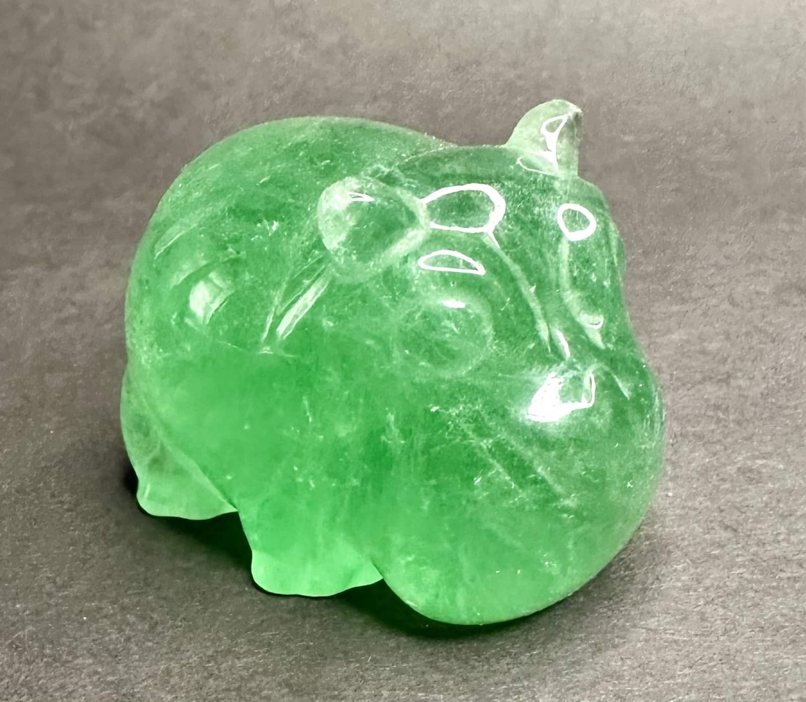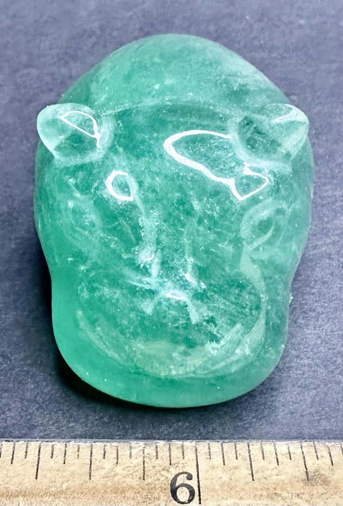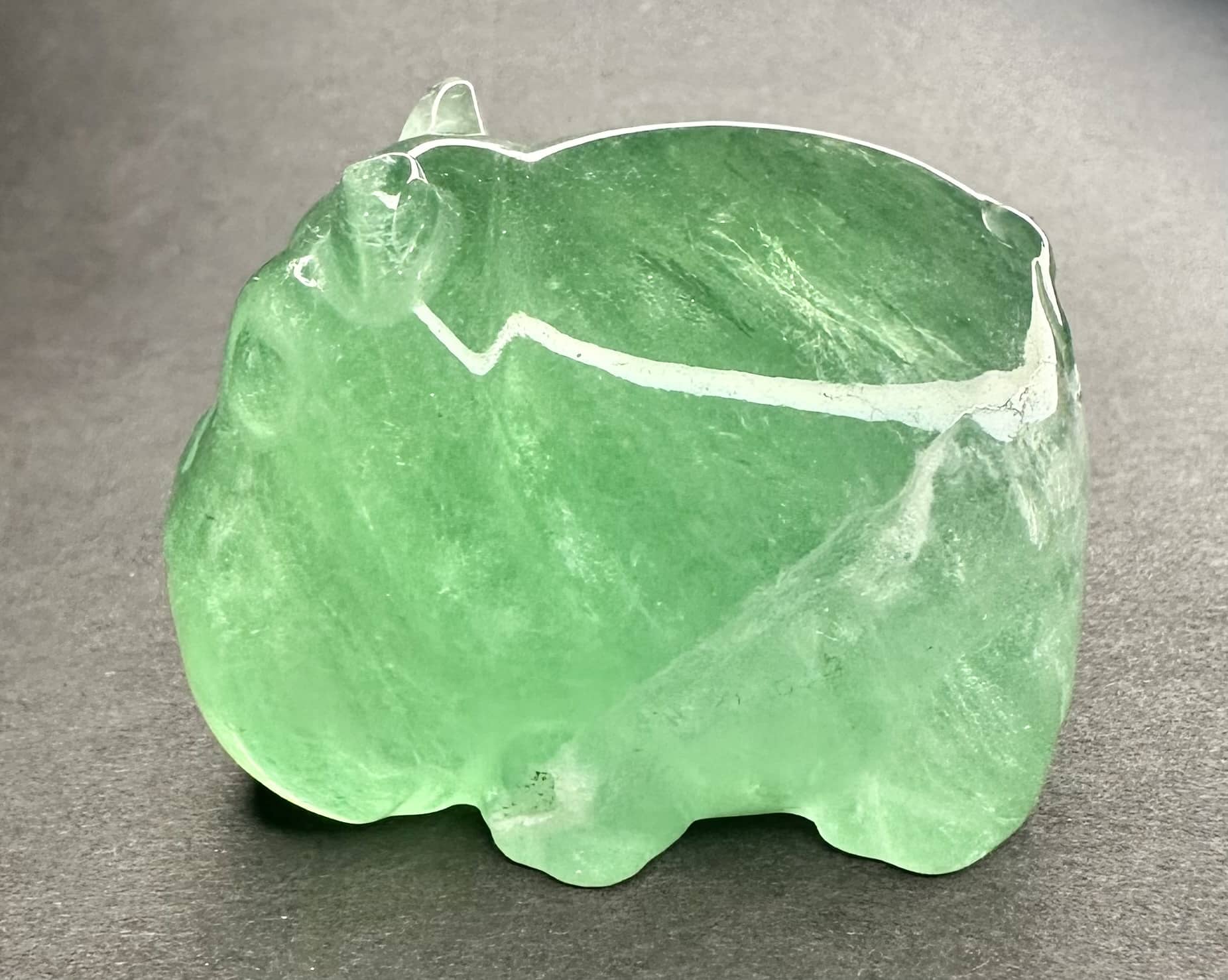 Selection: Carved and polished. Great emerald green color, clarity, inclusions and detail. Will fluoresce a bluish purple under a LW/UV light.