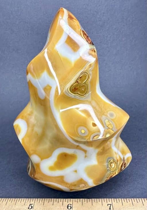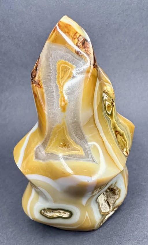Appearance: Carved and polished to a high shine. Brilliant colors and banding in a mesmerizing design.