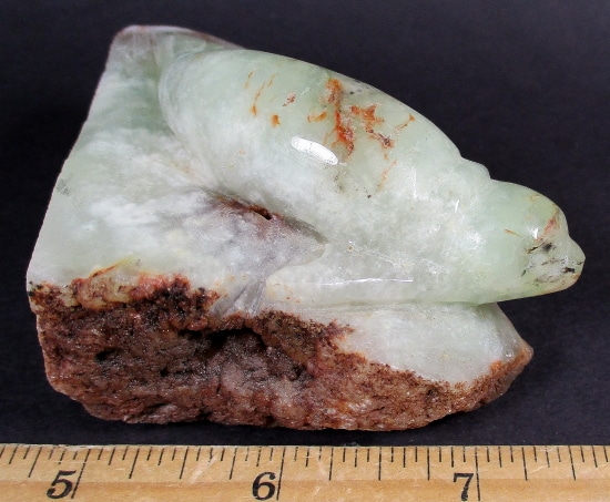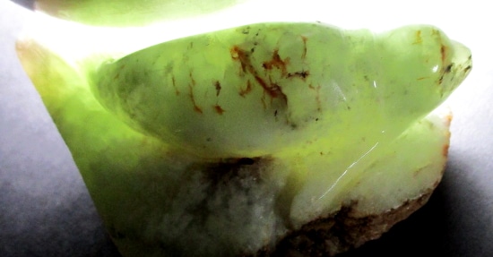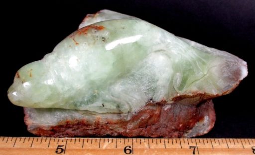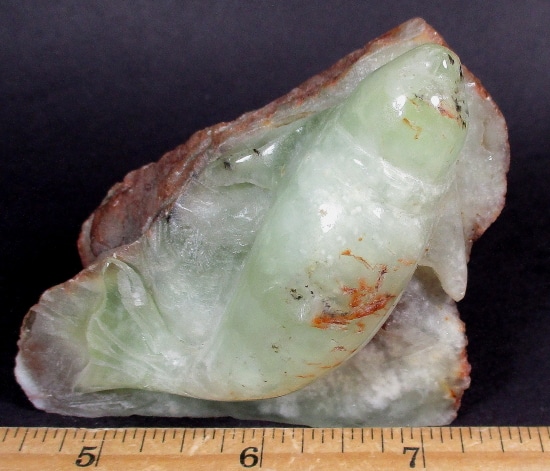 Prehnite is a Phyllosilicate mixture of Calcium and Aluminum. Although it is not a Zeolite, it is often associated with them and with Datolite and Calcite, in veins and cavities of Basaltic rocks, sometimes in Granites, Syenites or Gneisses. The color varies from light green to grey to white to yellow or a mix of colors. It is translucent and was named after it’s discoverer, Colonel Hendrik von Prehn.