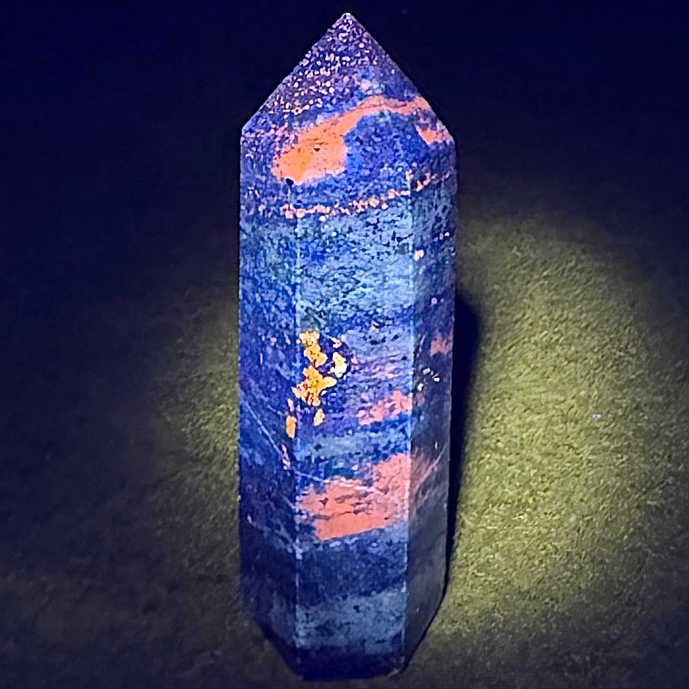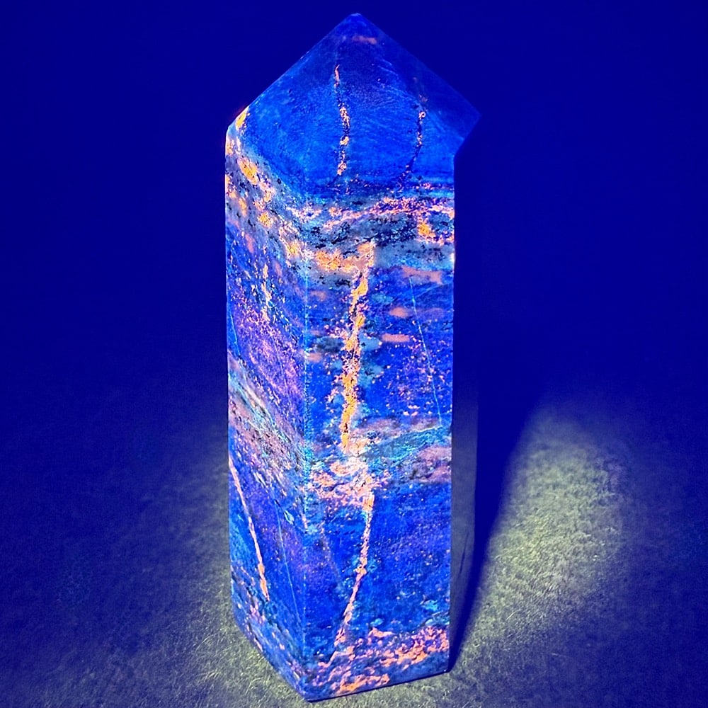 Appearance: High quality polish that brings out the great sparkly Royal blue color with speckles of Pyrite. UV fluorescent.