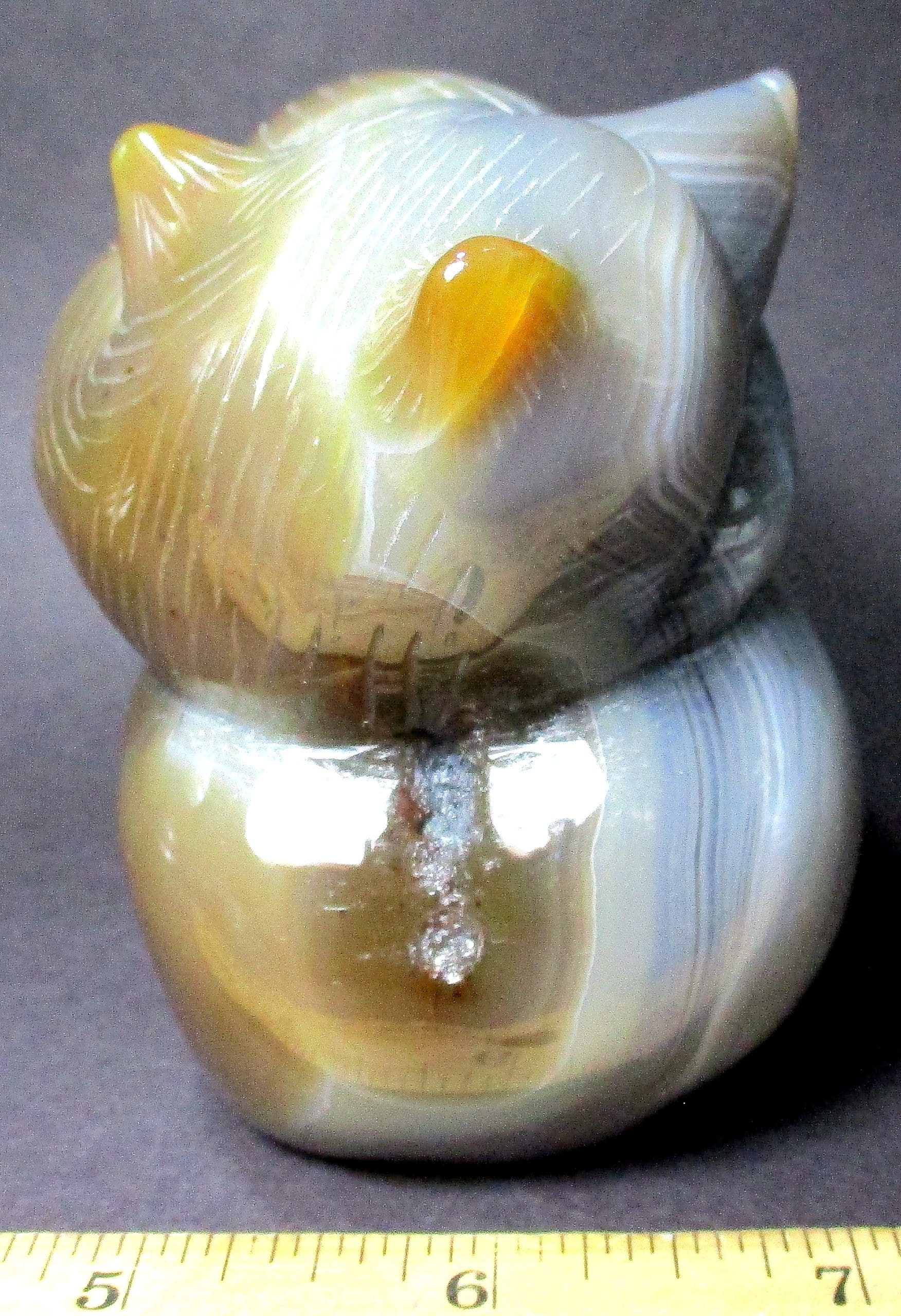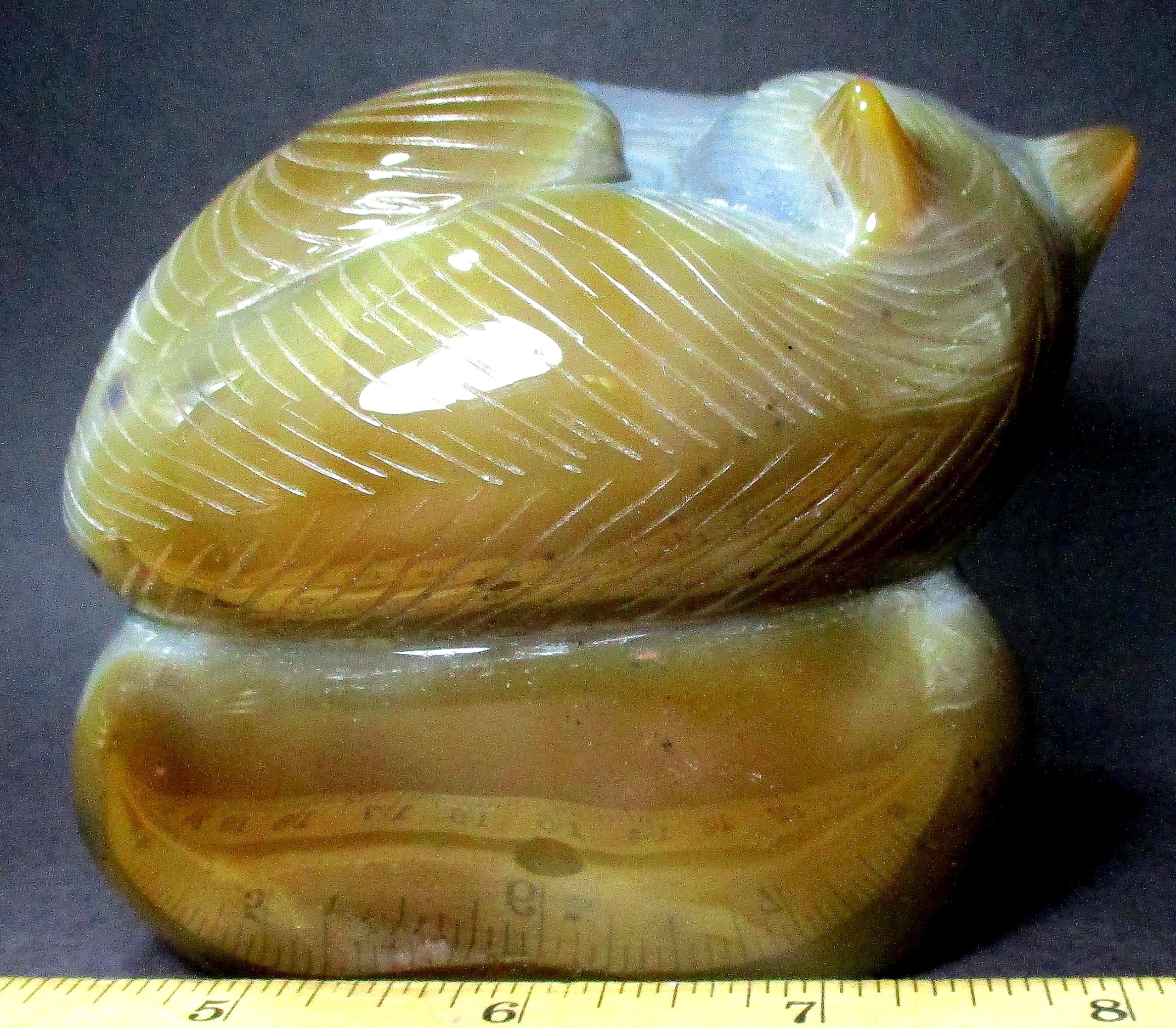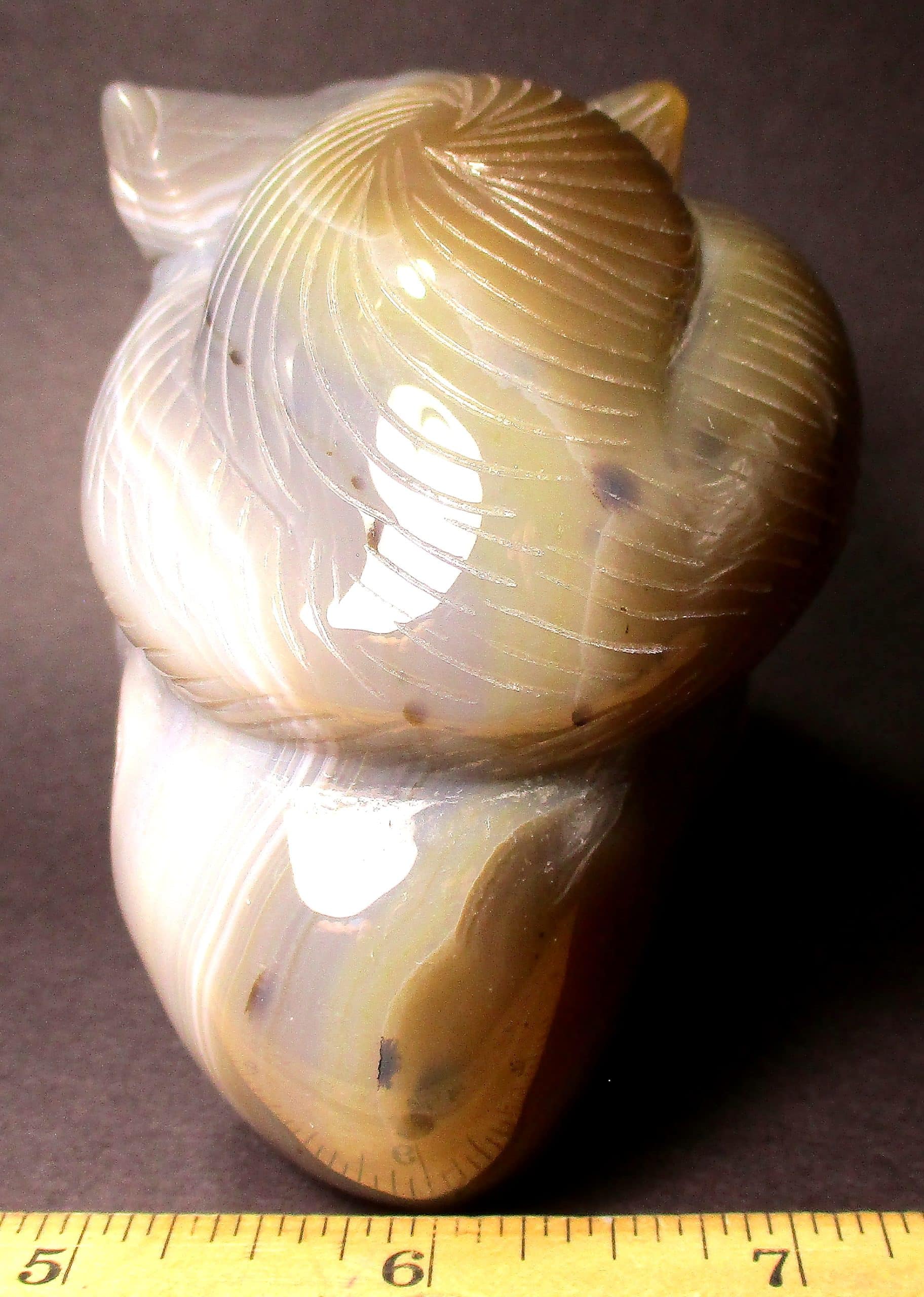 Appearance: Carved and polished to a high shine. Soft colors, cool banding and sparkling crystal.