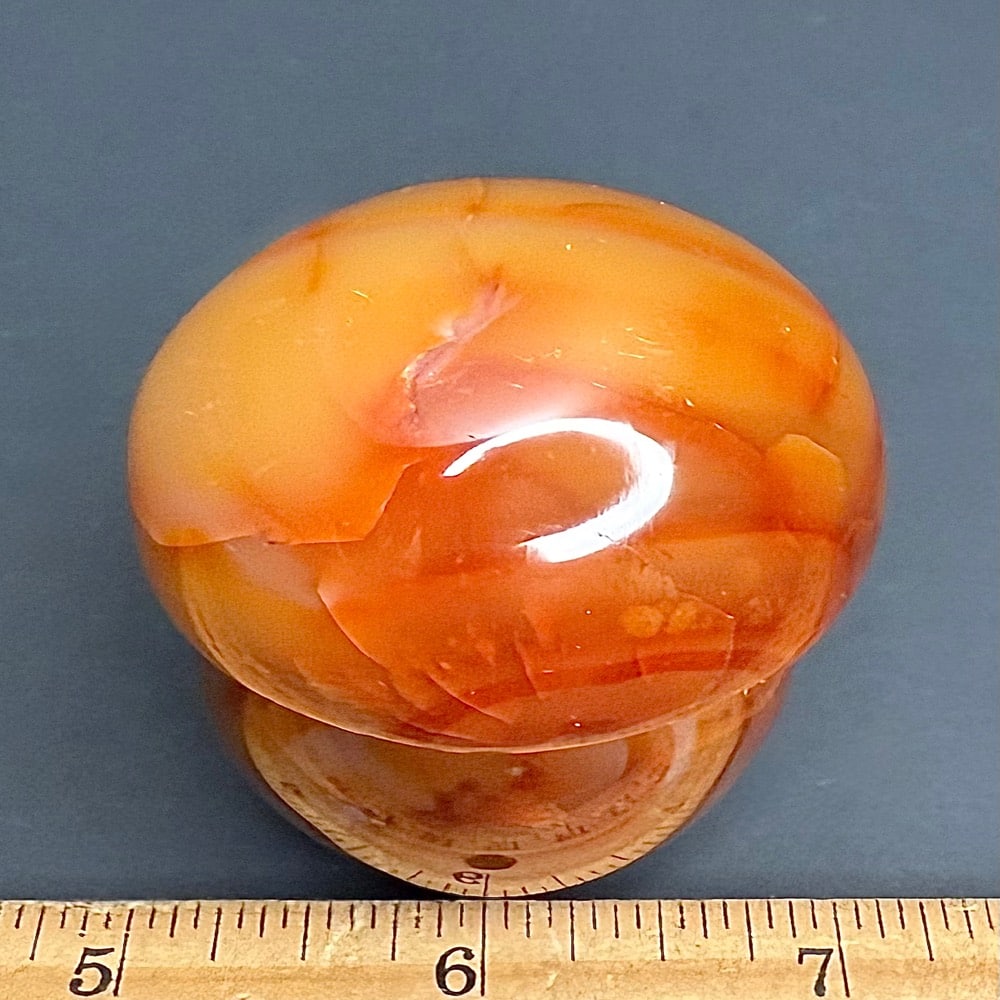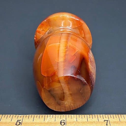 Carnelian is a red or reddish-brown variant of Chalcedony but also may come in the colors of orange and pink. It is quite common and usually found in translucent pebble form. It is found in several areas of Europe, Iceland and Madagascar.