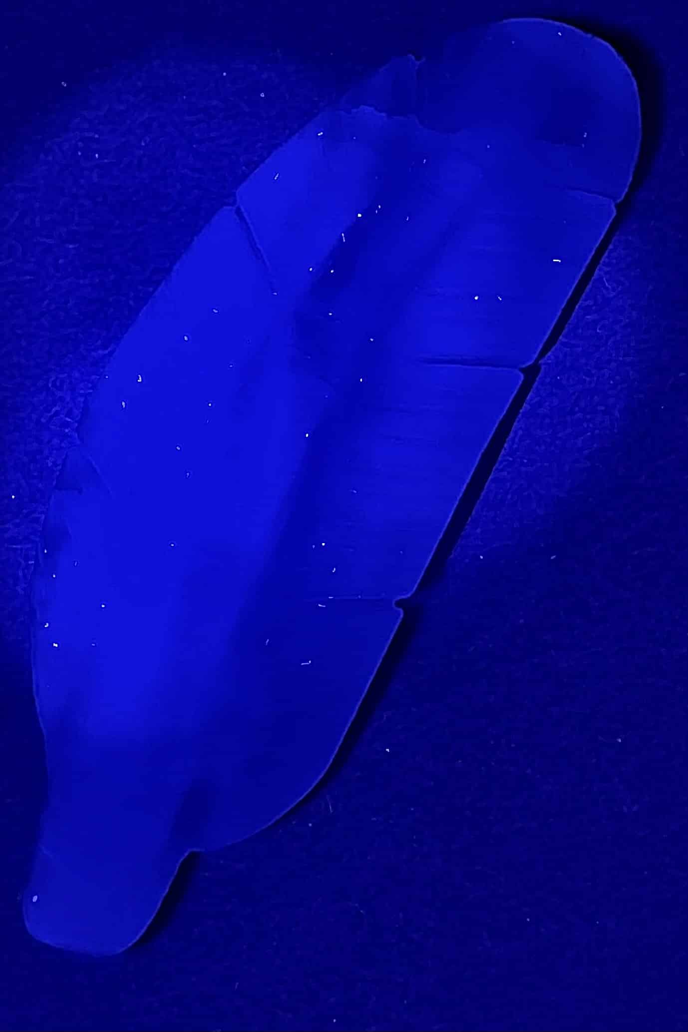 CV407: Fluorite FeatherA great new item with fabulous color, great design, will fluoresce a bluish purple under a LW/UV light and has a good polish.