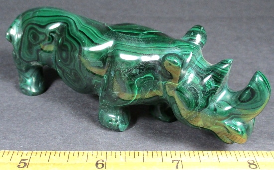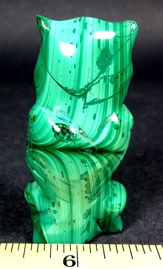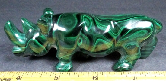 Malachite is a Copper Carbonate mineral that often forms botryoidal, fibrous or stalagmitic masses. It is often the result of the weathering of Copper Ores and is commonly found with Azurite, Goethite and Calcite. It is typically associated with Copper deposits including Limestone which is the source of the Carbonate. Malachite is found in many regions world wide and is usually shaded green in color.