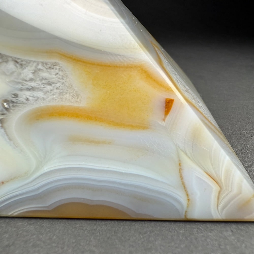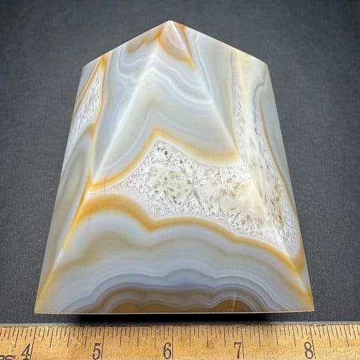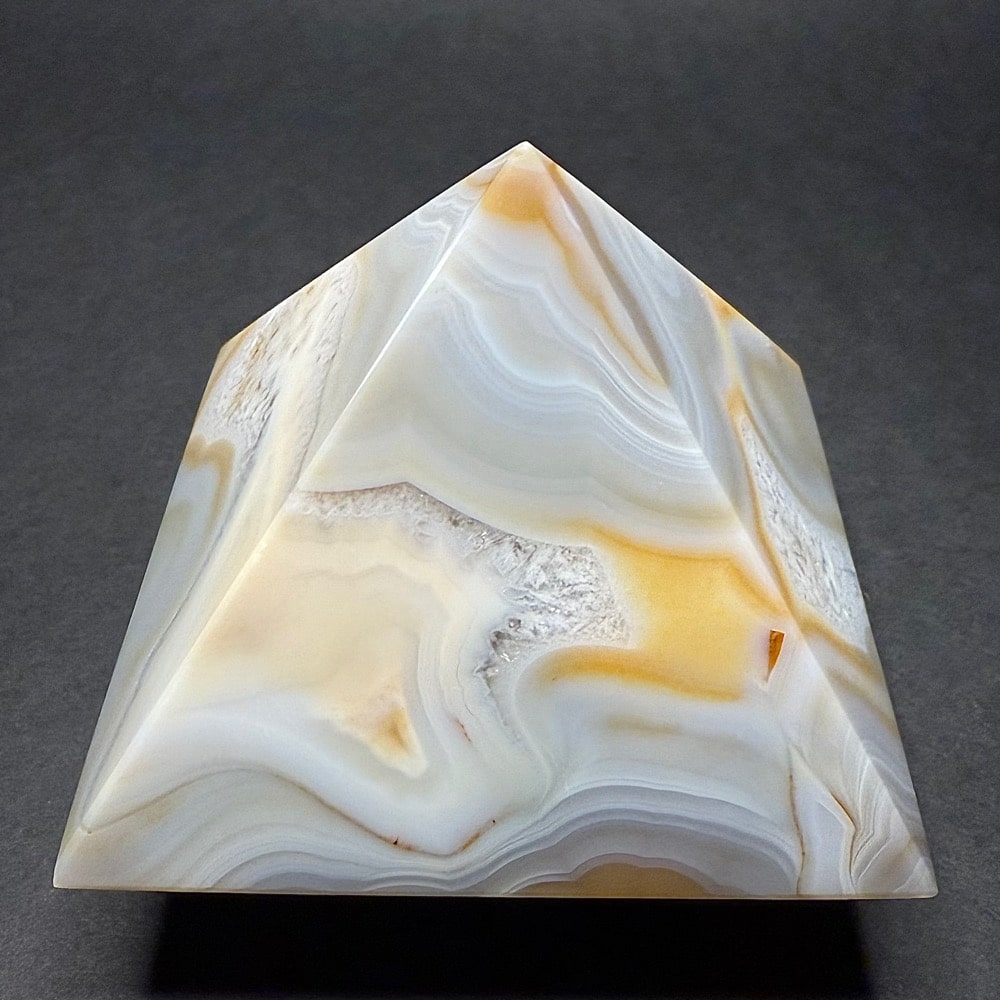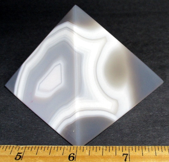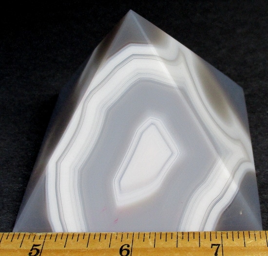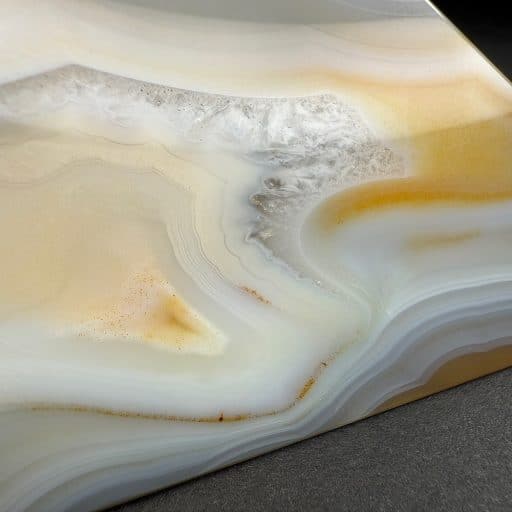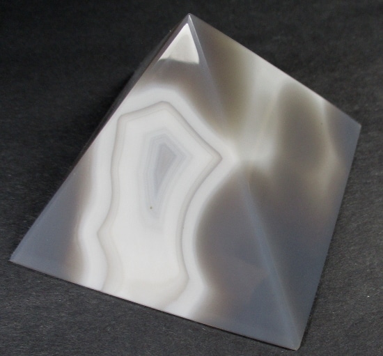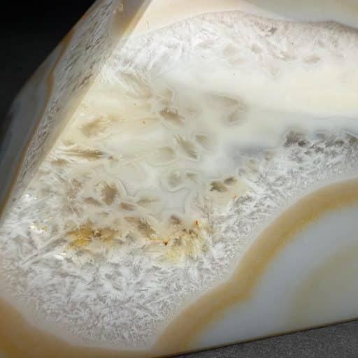 Agates mostly occur as nodules in volcanic rocks or waters containing silica in solution possibly derived from the decomposition of silicates in the lava. The siliceous matter is deposited in regular layers resulting in the banded or striped formation.
