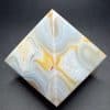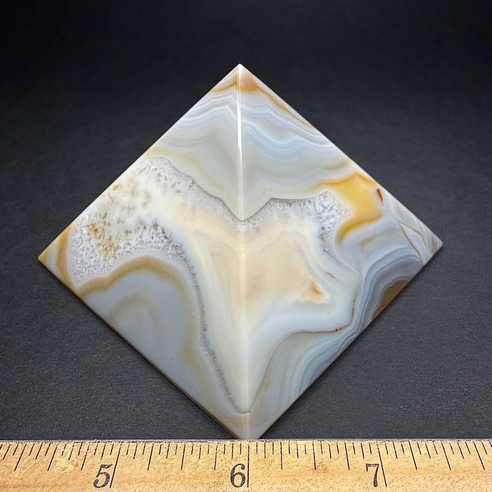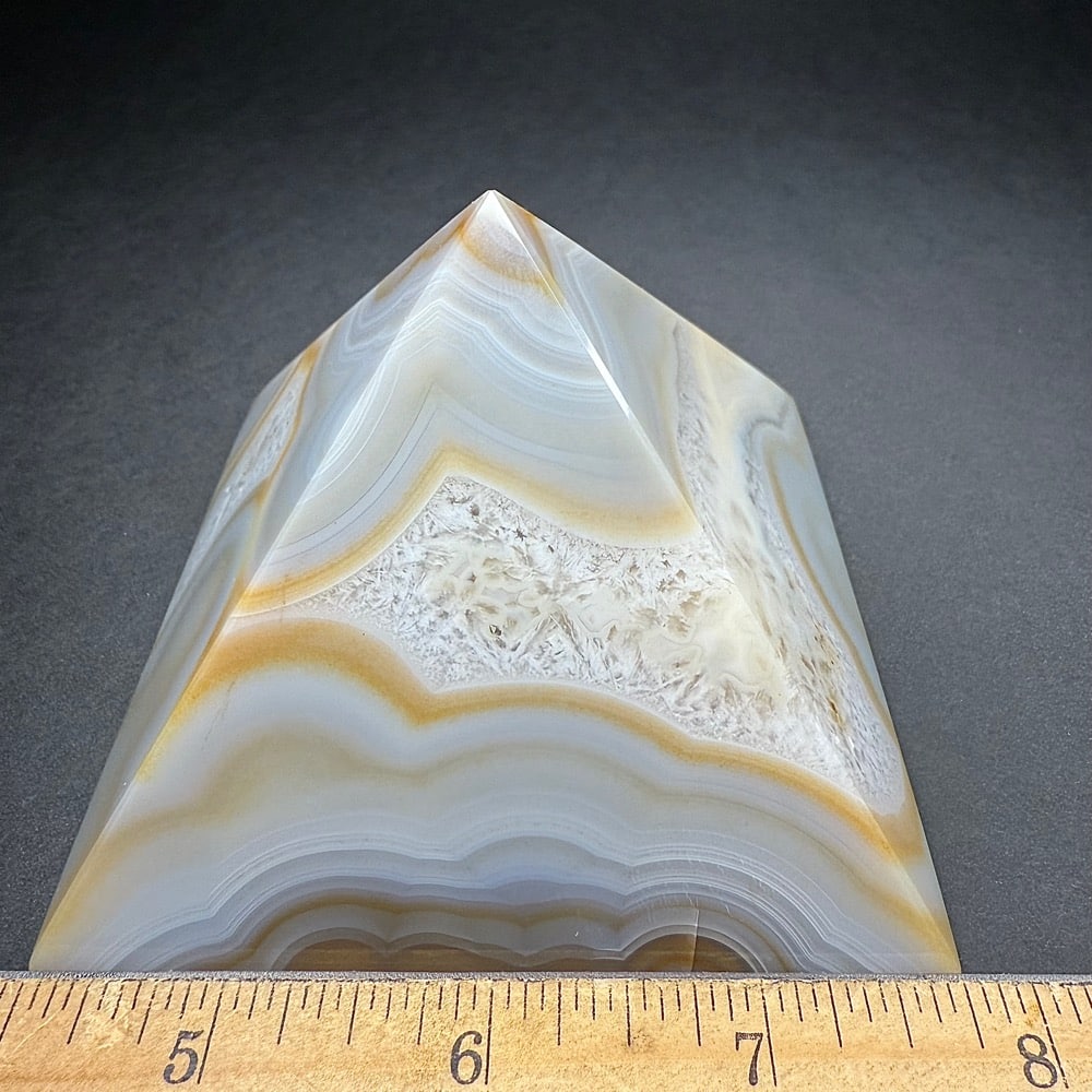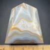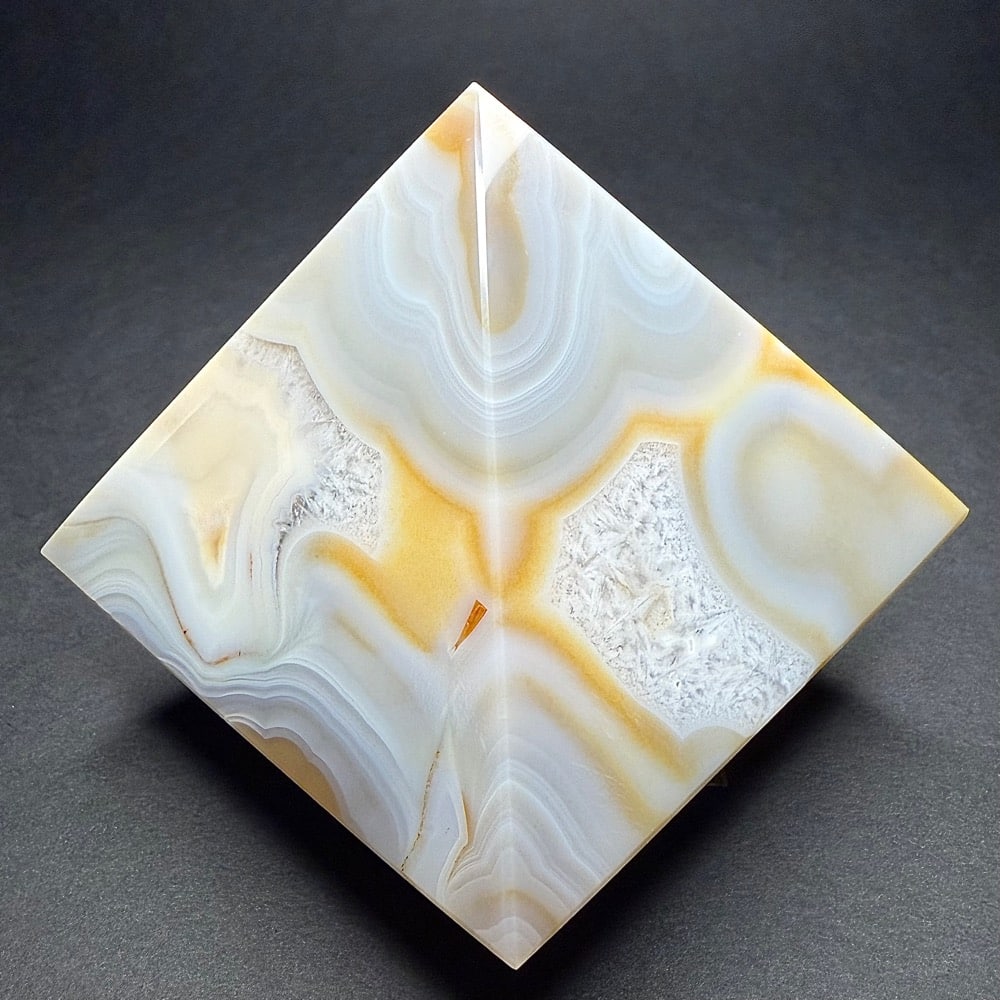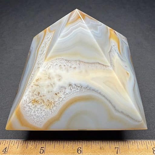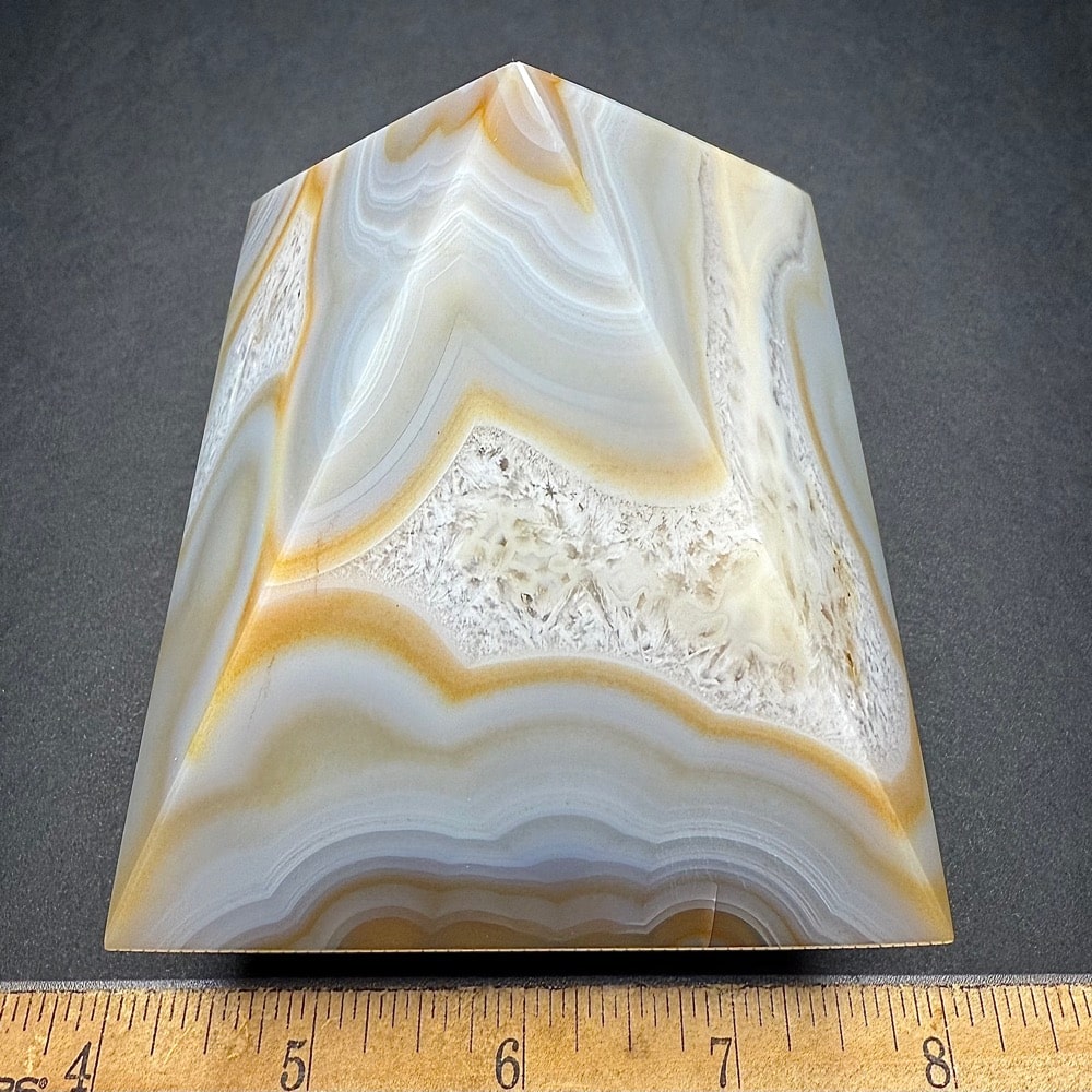 Agates mostly occur as nodules in volcanic rocks or waters containing silica in solution possibly derived from the decomposition of silicates in the lava. The siliceous matter is deposited in regular layers resulting in the banded or striped formation.