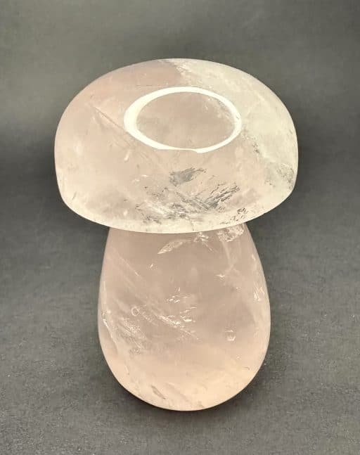 Rose Quartz is a member of the Quartz family that exhibits a pale Pink to Rose Red hue. The color is usually due to the trace amounts of Titanium, Iron or Manganese in the mass material. Some Rose Quartz contains microscopic Rutile needles which produce an asterism in transmitted light. An all-time favorite at the Rock Shop.